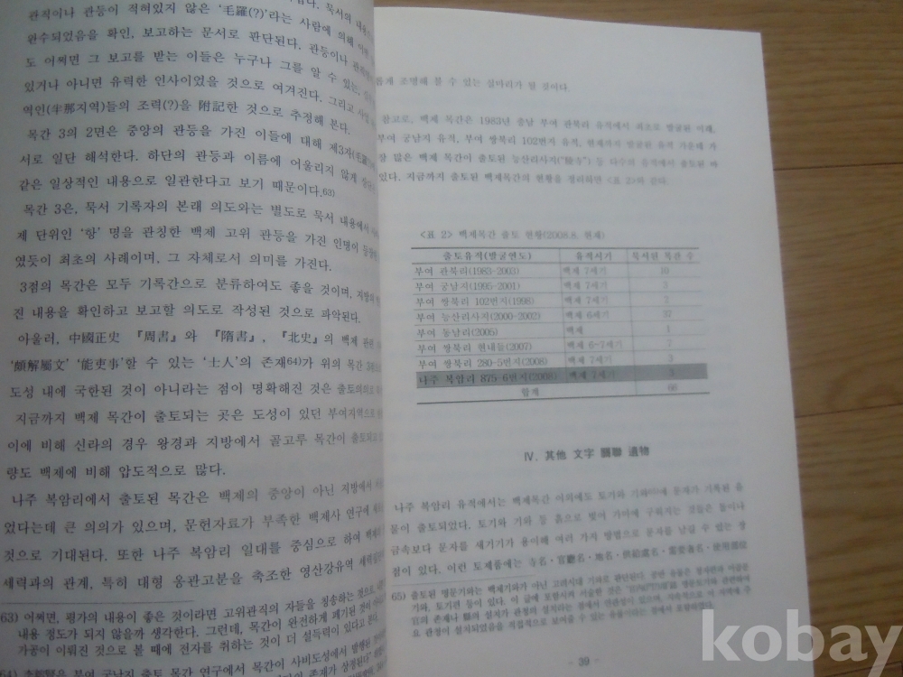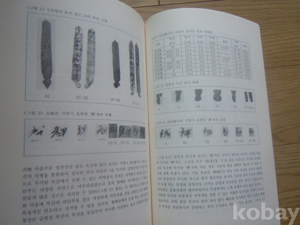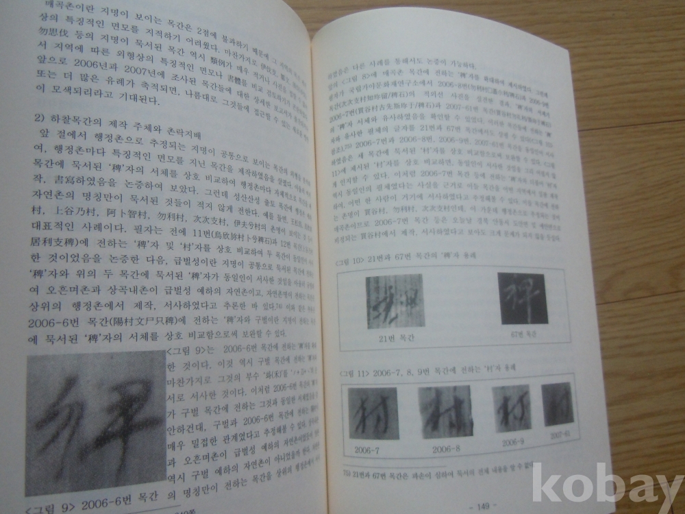 동아시아 고대목간의 형태(한국목간학회) / 2008년 초판본 / 큰판형, 총 183쪽 / 도판 수록 / 고대 서예, 문자학 관련 자료 /