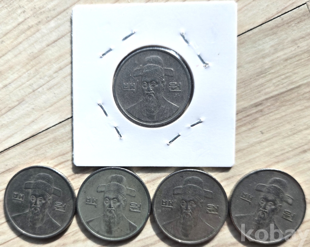 한국은행 발행 100원 사용재 5개