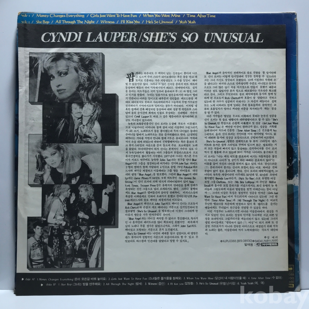 LP 22,480-29 Cyndi Lauper - She's So Unusual _ 자켓 EX 알판 EX- EX 84 년 국내반