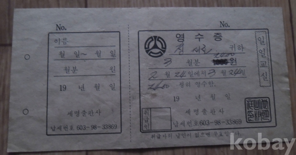 1979년 일일교실 구독료 영수증