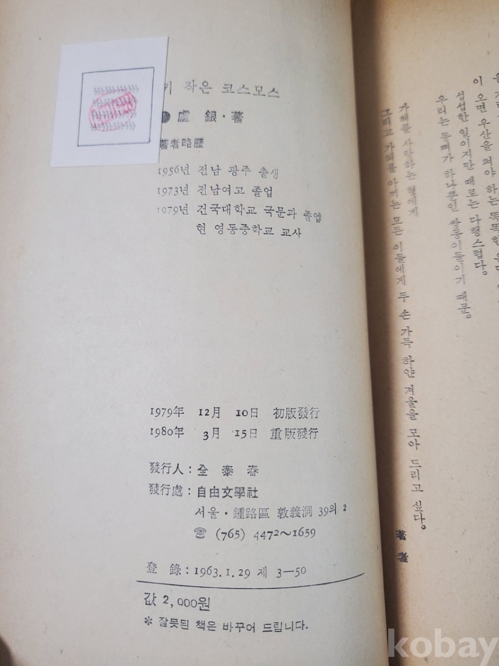 1. 키 작은 코스모스, 노은, 자유문학사, 1980년, 386쪽, 상태 상, 사진 참조