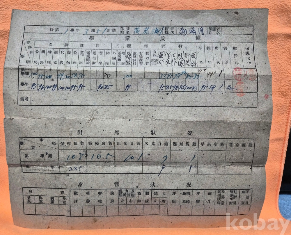 일제강점기도는 해방 직후 성적표로