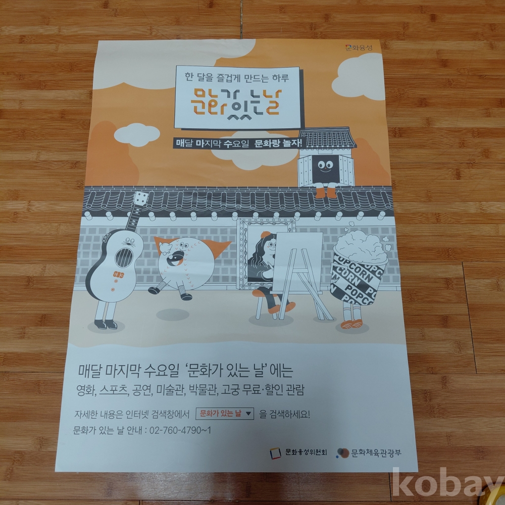 문화가있는날 문화융성 위원회 문화체육관광부 홍보대형 포스터 뒷면 테입 자욱있음 사진참고 올려드립니다