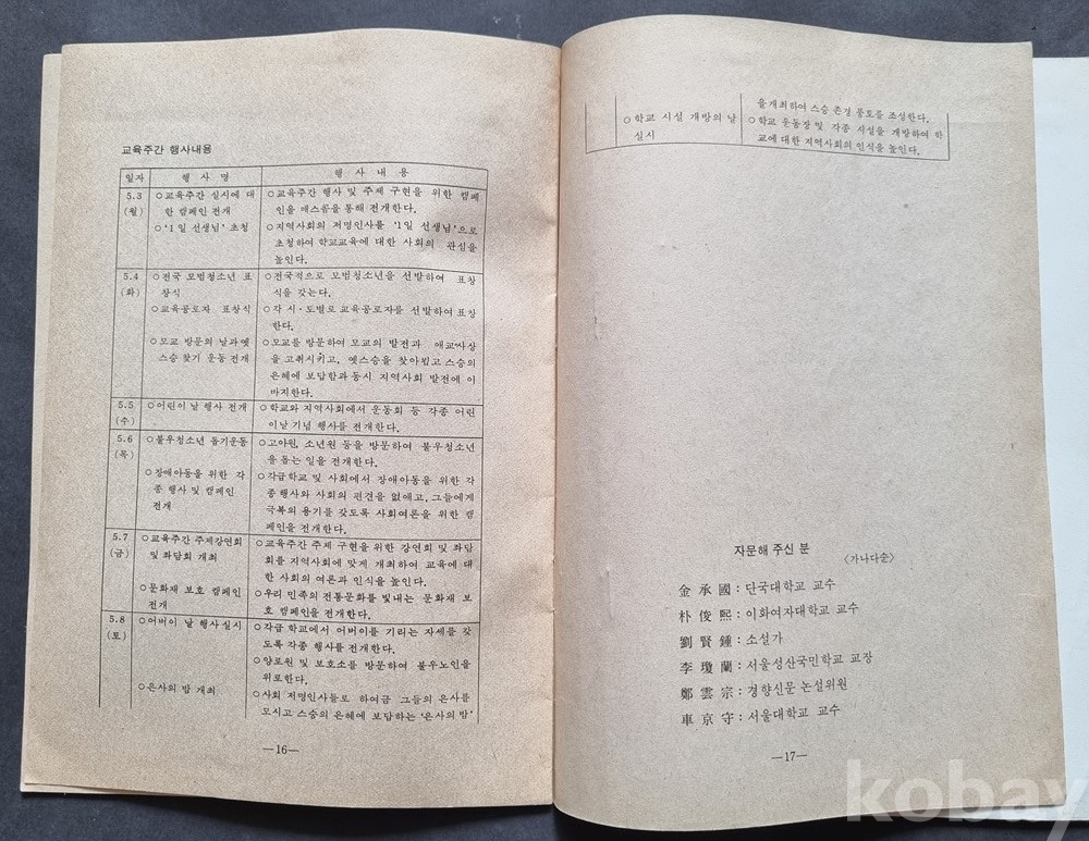 주요내용: 80년대 당시 스승 존중 풍토 조성, 교권 확립, 교육주간 행사 내용(일자별 계획) 등이 수록된 역사적 자료.