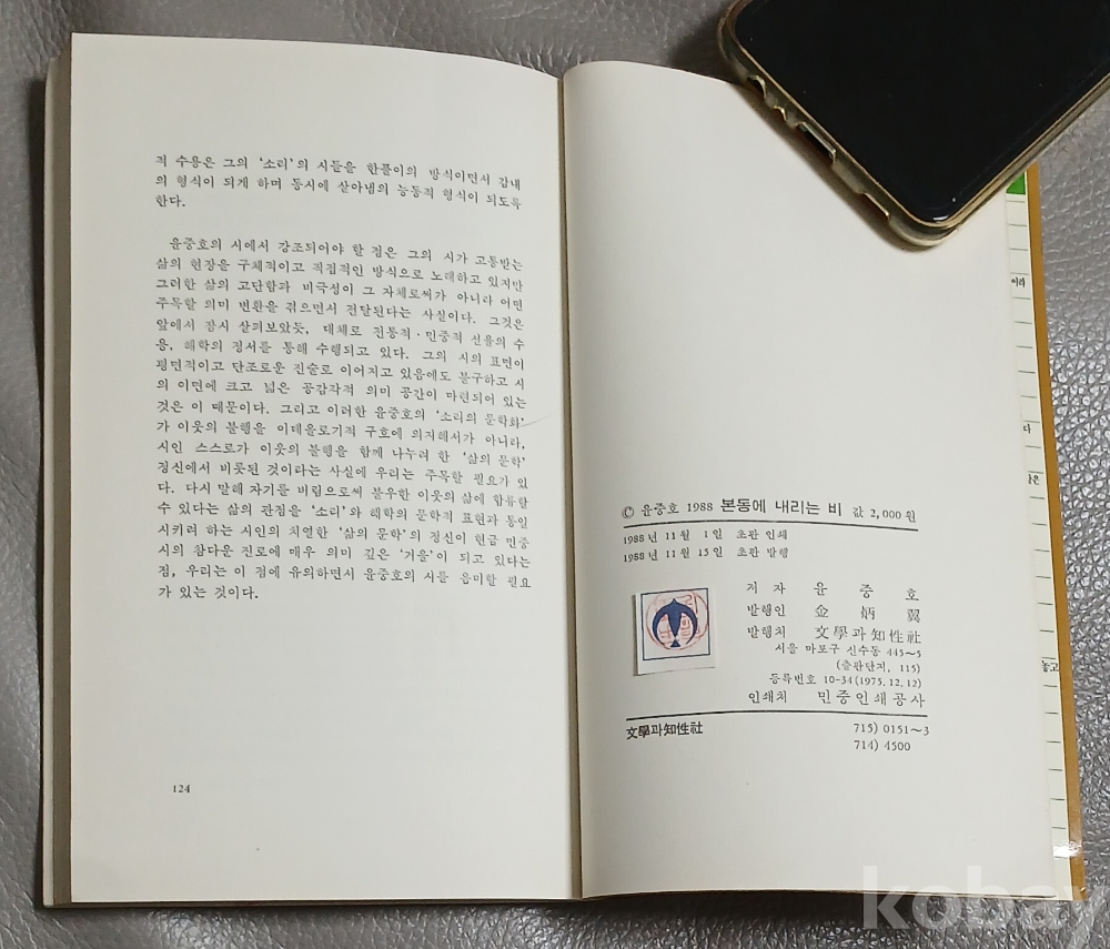 [초판본시집] 본동에 내리는 비 - 윤중호 1988년초판발행