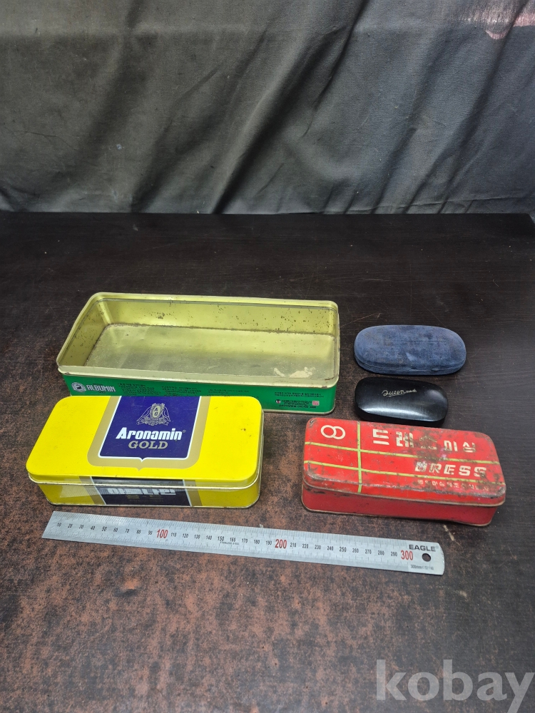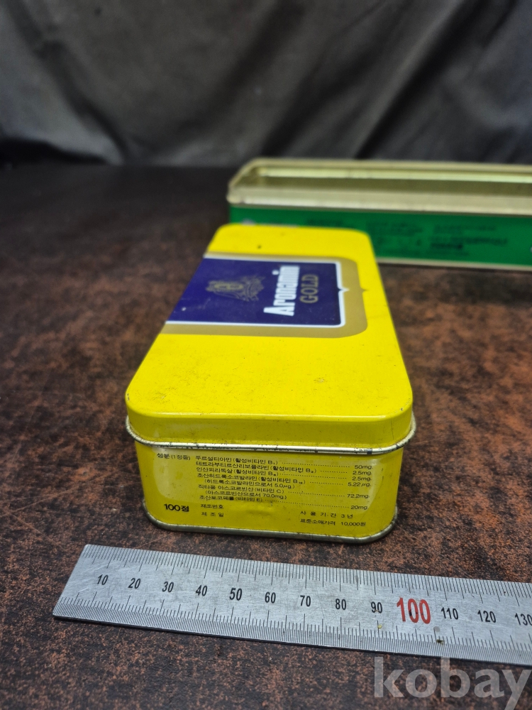 1980-90년대 아루나민 골드 약깡통 알부민 약품 깡통 그위 오래된 철제 깡통과 플라스틱 케이스 28*12*6