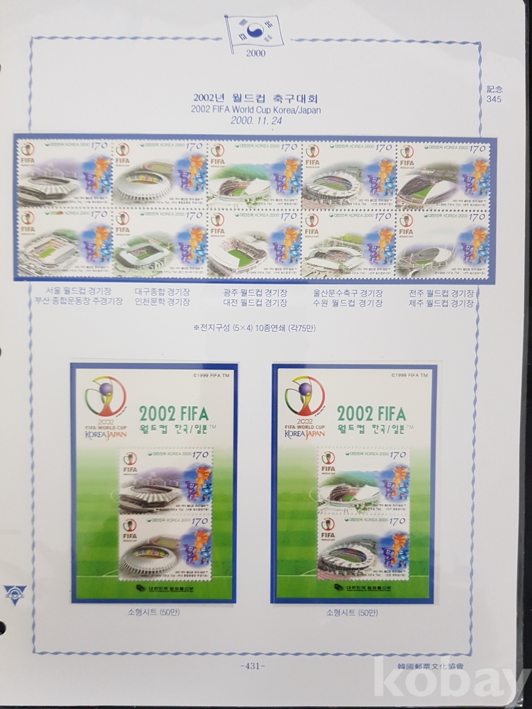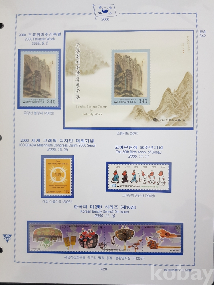 - 2000년~2002년 한국우표앨범 10번 우표책 앨범해체분 / 한국우표문화협회