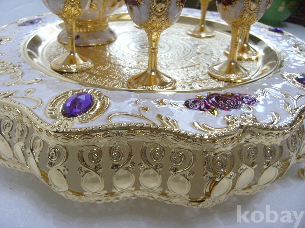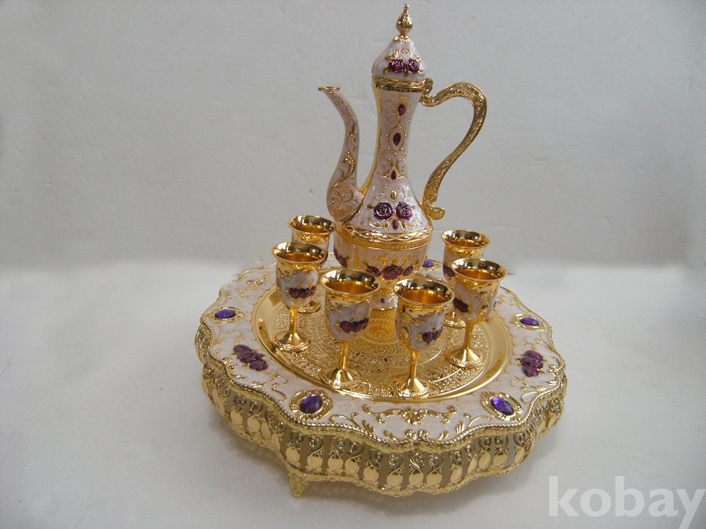 금속재질위에 칠보를 입혀만든 장식용 주전자와 잔셋트 입니다.