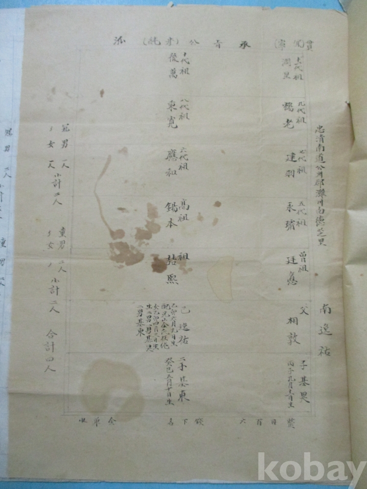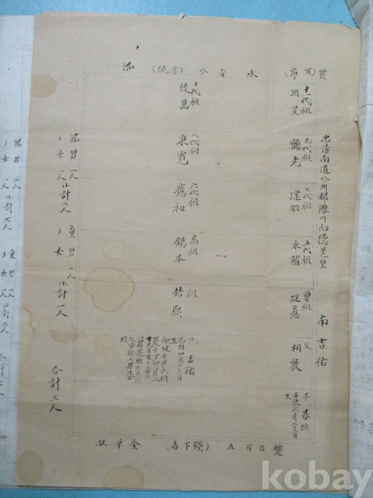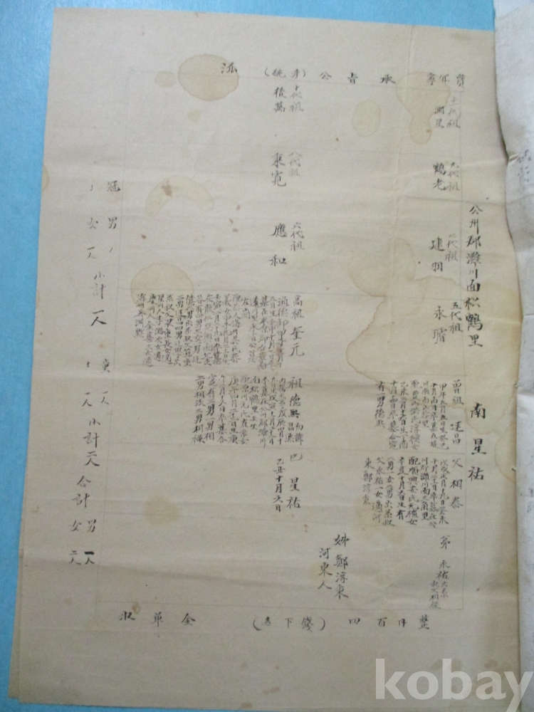 경매올린 간찰관련 인물이 宜寧 남씨 승지공(조선전기문신 남언순) 후손이기에 10대조까지 기록 문중에서