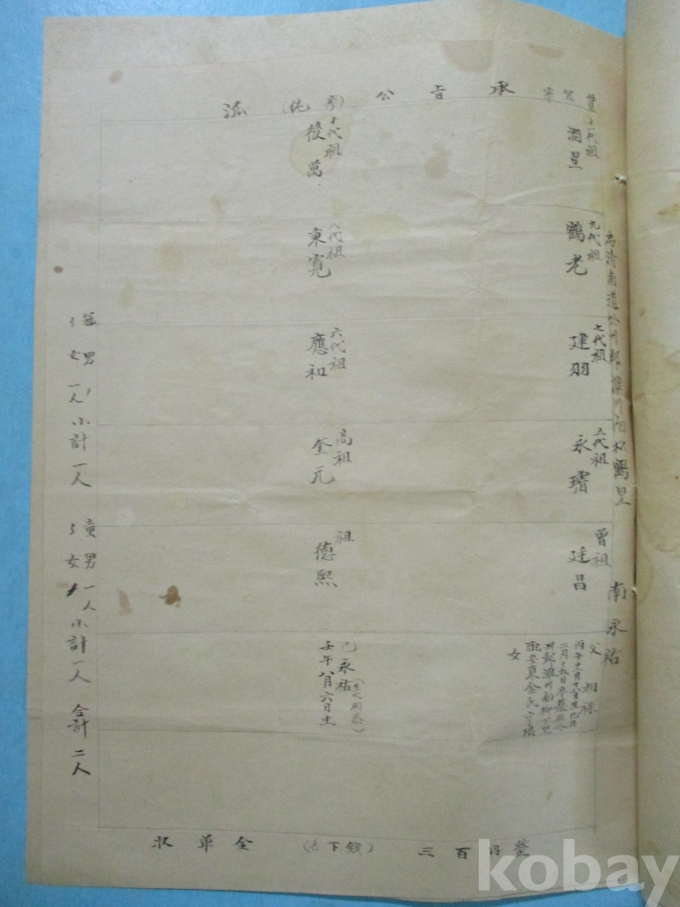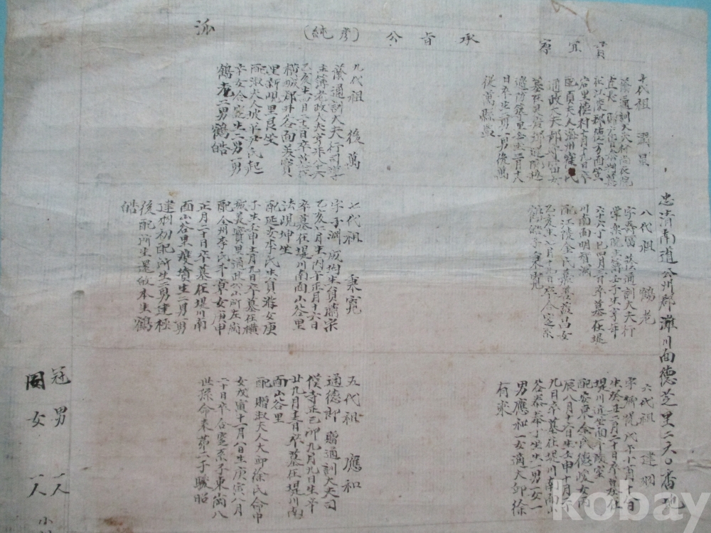 족보에 올리려 기록한 필사자료로 족보간행 문중에 제출하기 위해 필사한것으로 추정