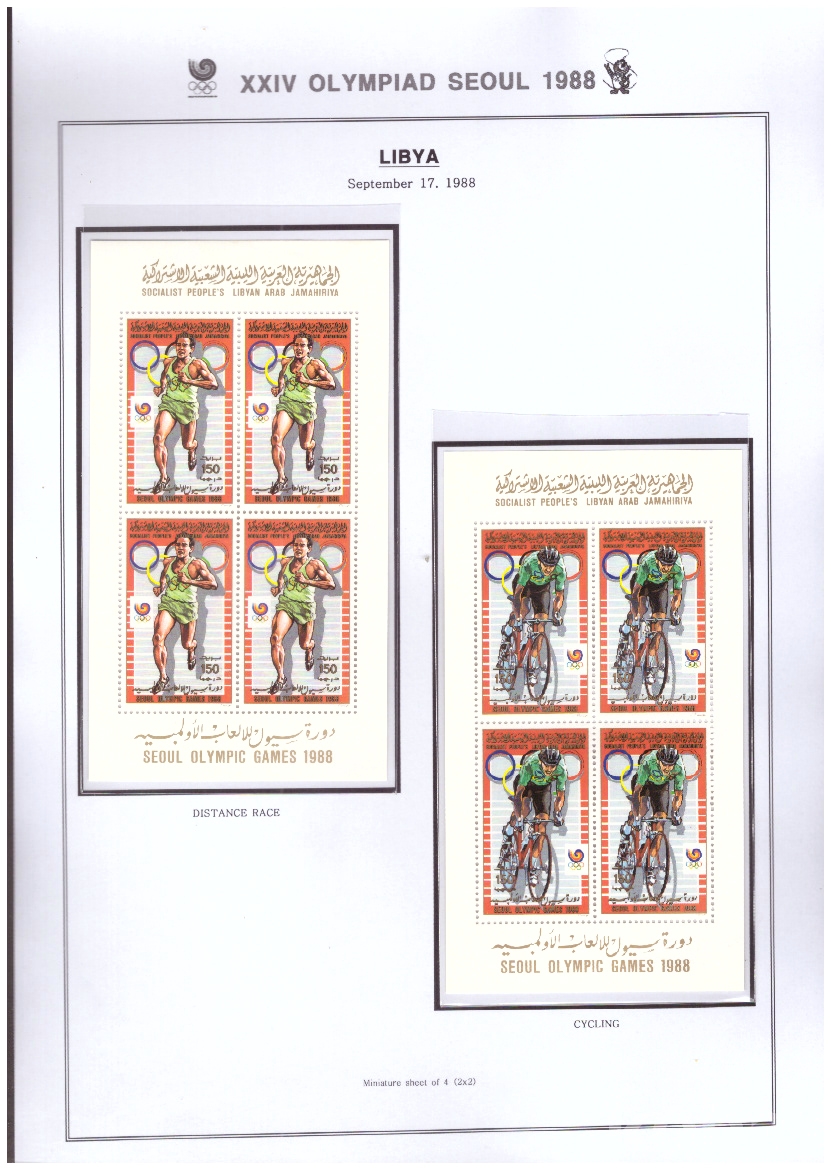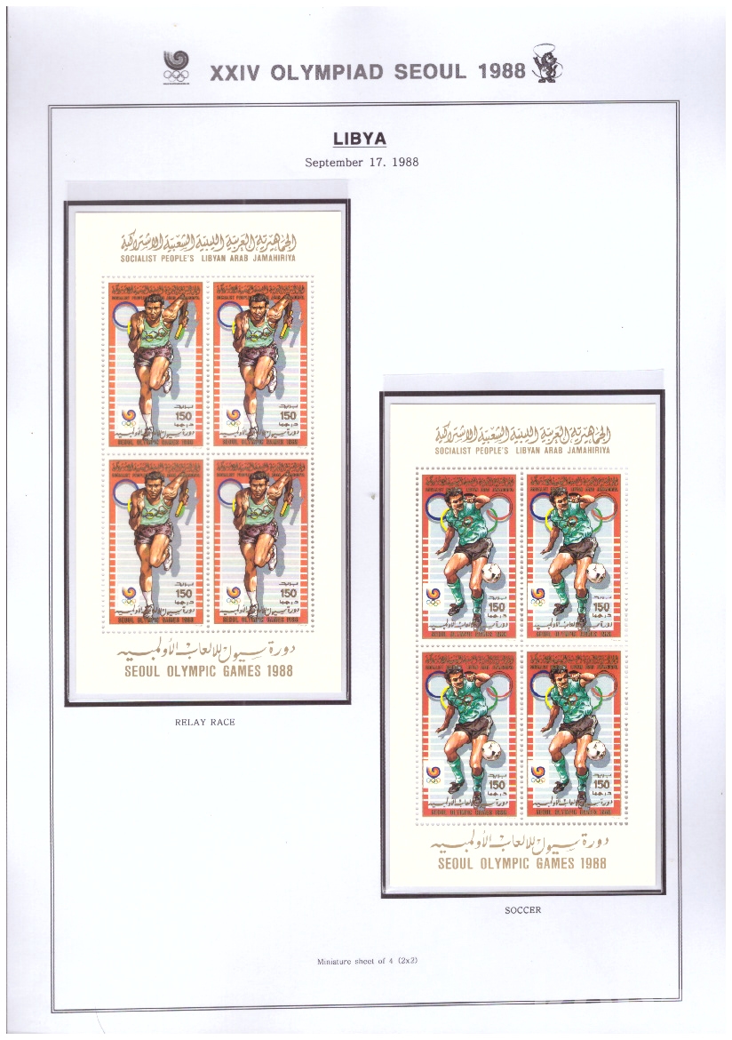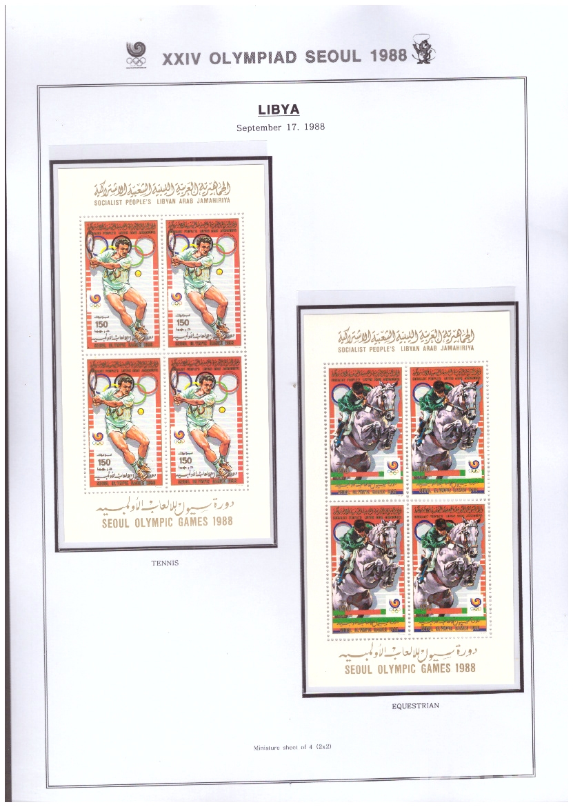 (서울올림픽) Libya(리비아) 1988.9.17 테니스외 6완 miniature sheet (block of 4) MNH