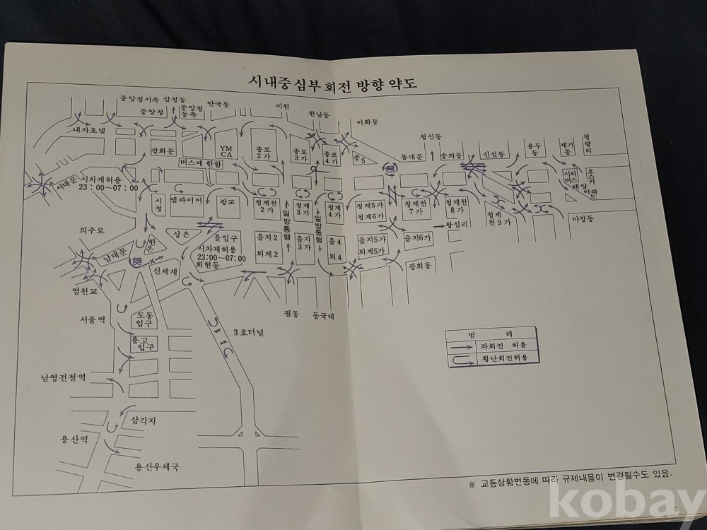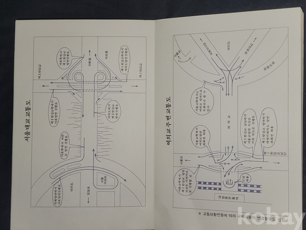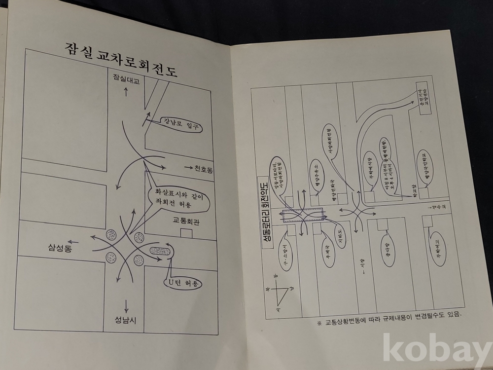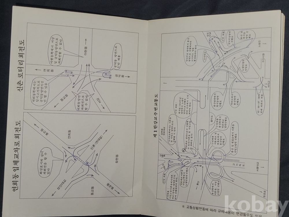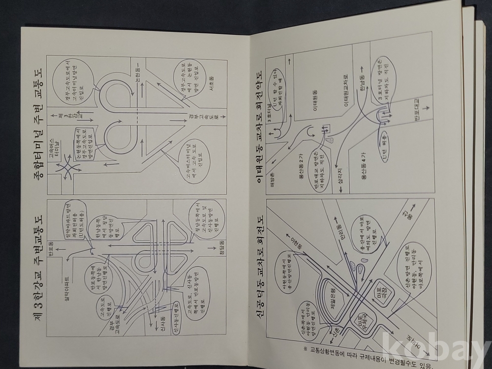 빈티지 세월 감이 느껴지는 1984년 교통안내 서울회전방향약도 고서적입니다.