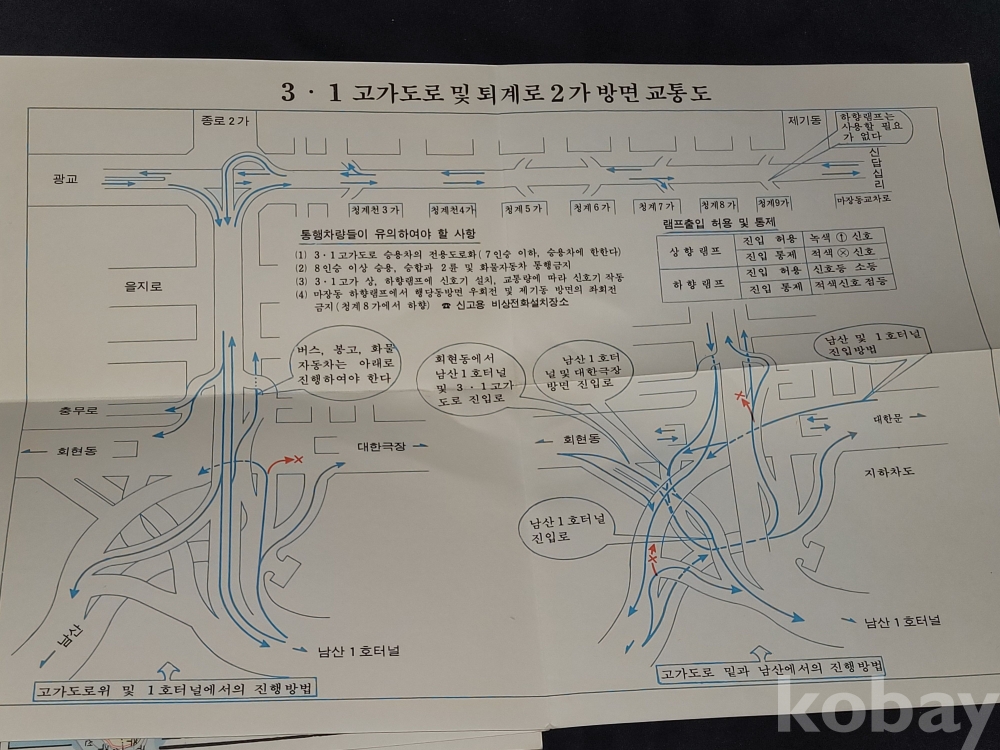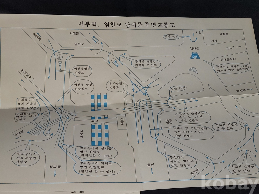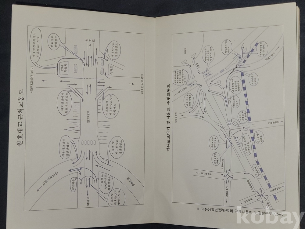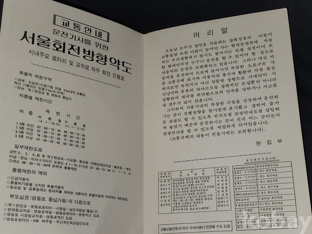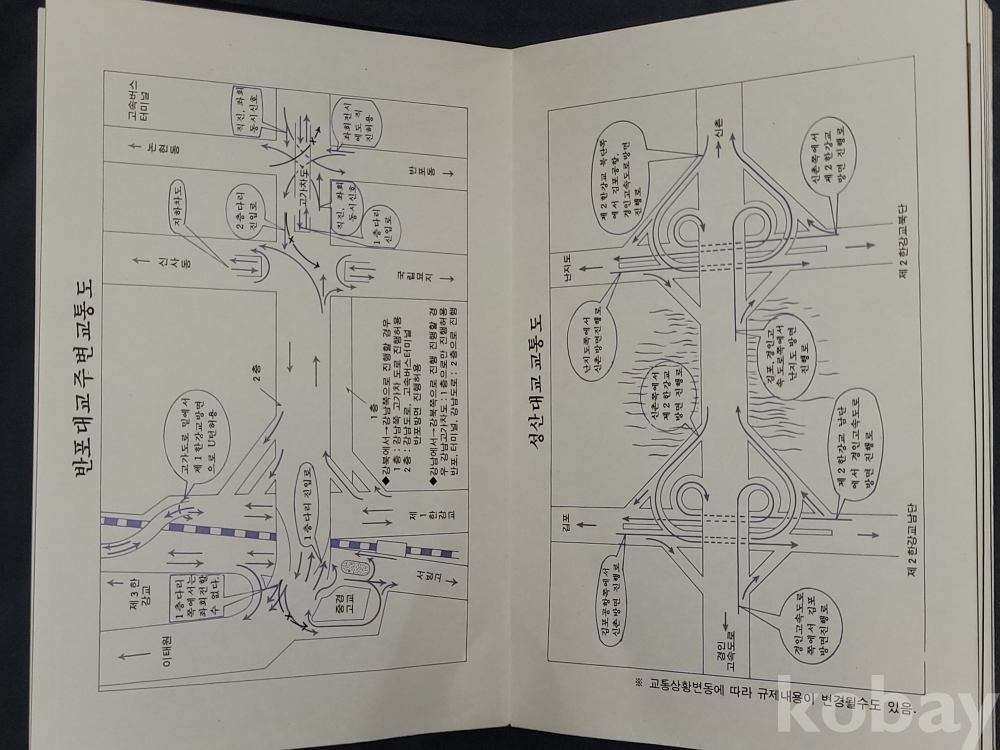 빈티지 세월 감이 느껴지는 1984년 교통안내 서울회전방향약도 고서적입니다.