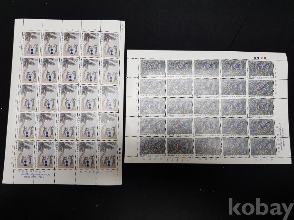 - 미사용 1980년 민화시리즈 - 제 1,2,3집 전지 6종 12매 모음