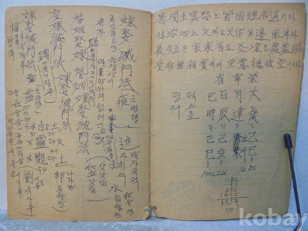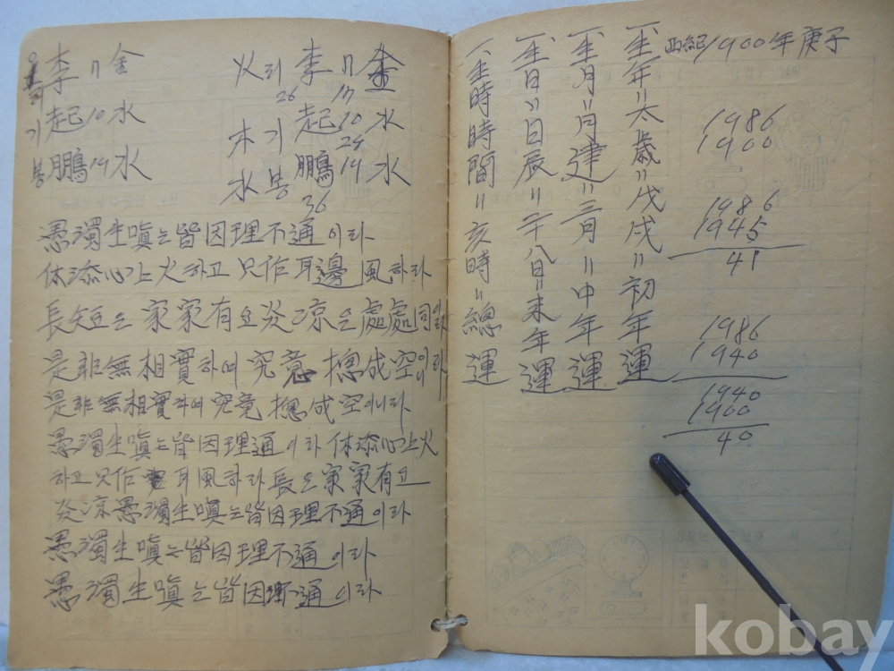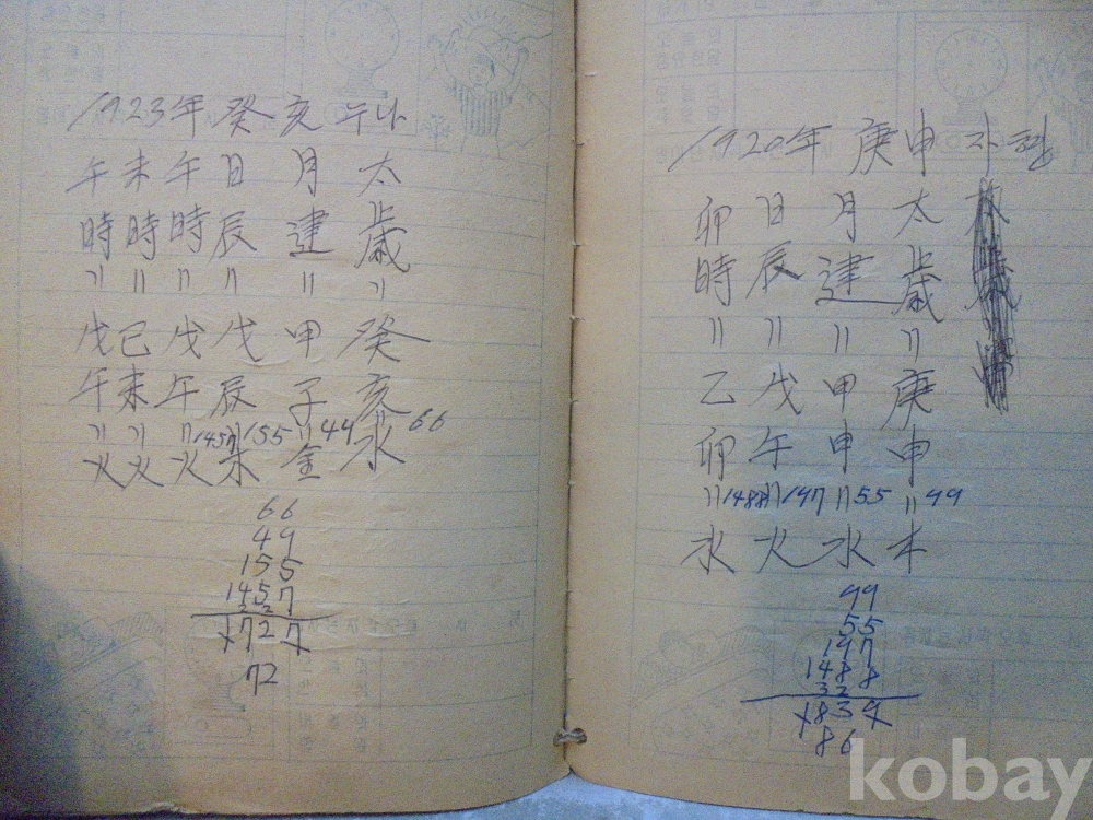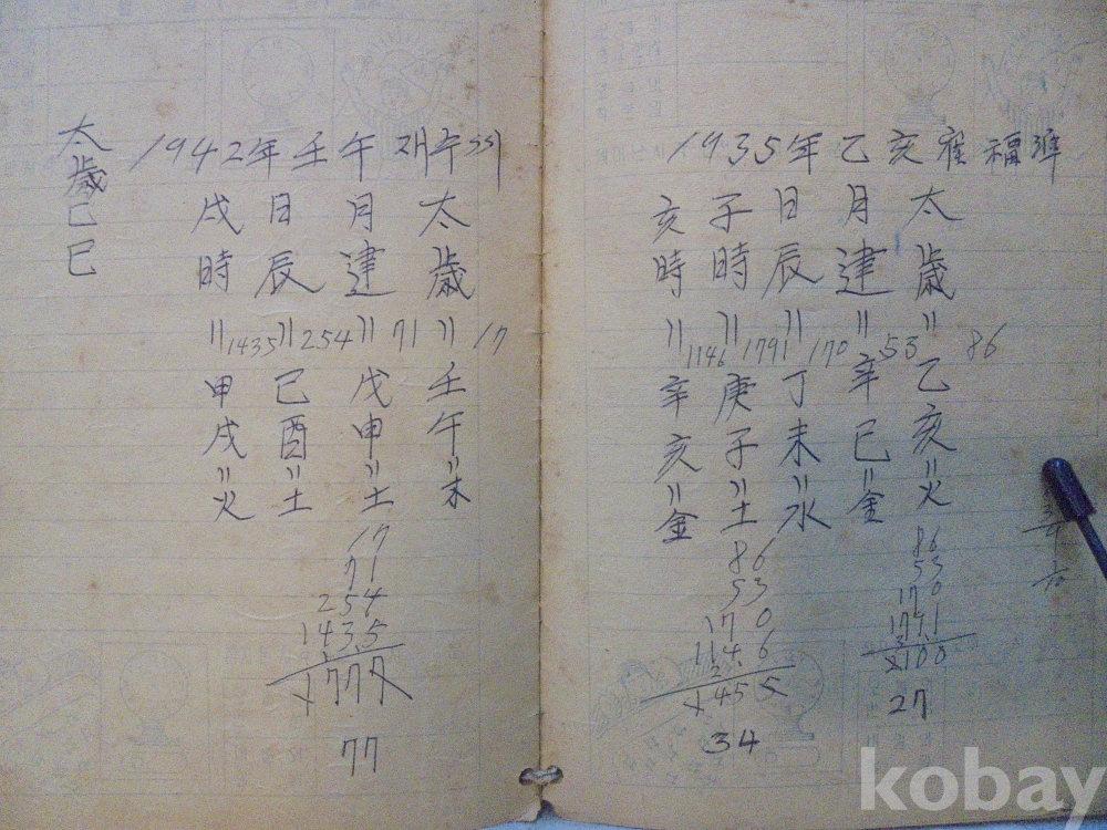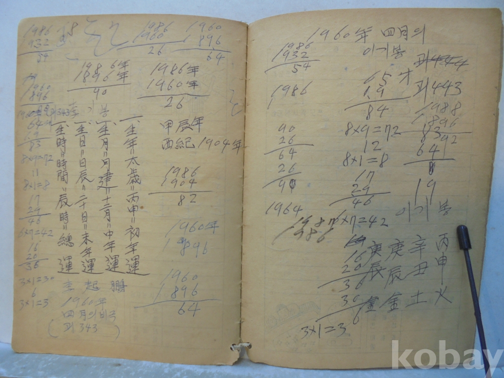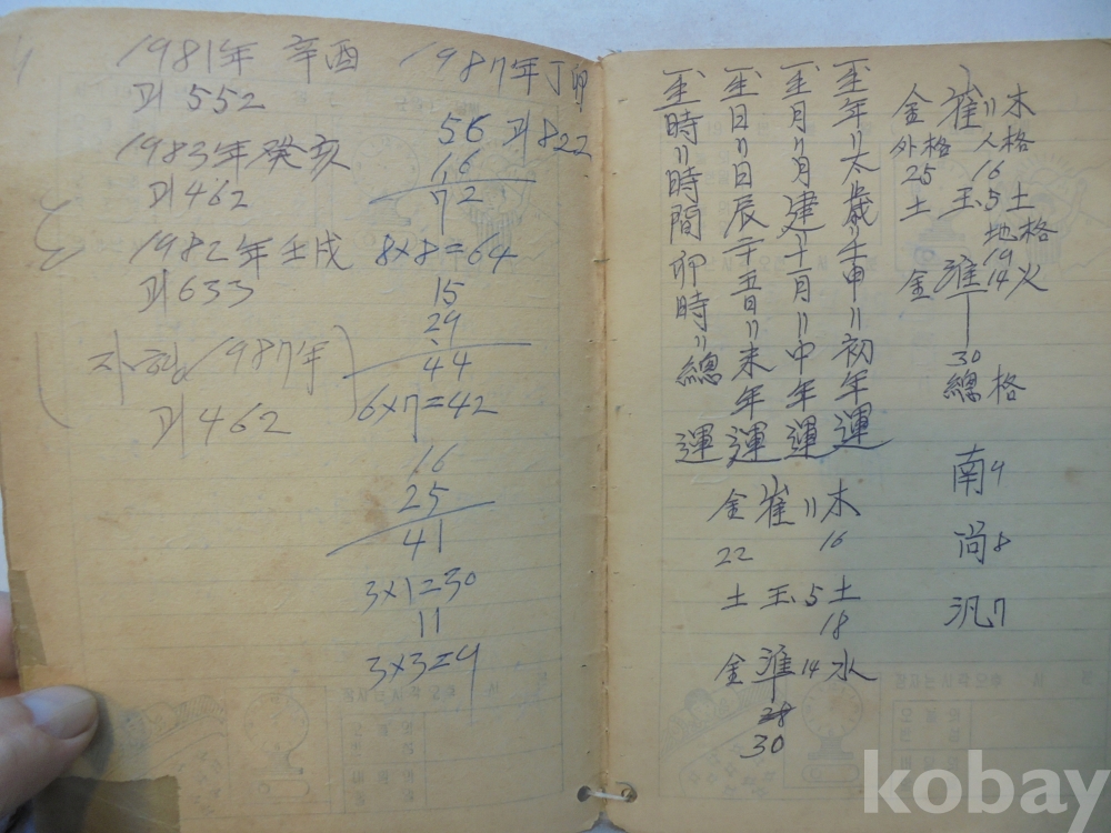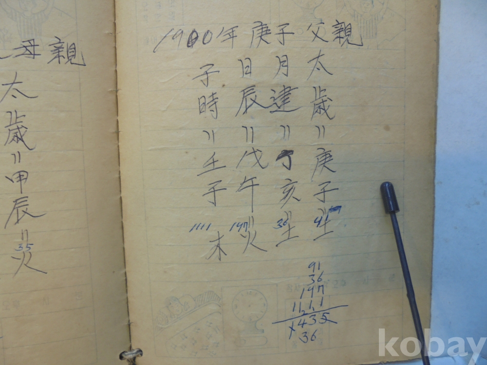 아마도 사주팔자 풀이 공부한 공책으로 보여지는 아주 재미나고 귀한자료 입니다.