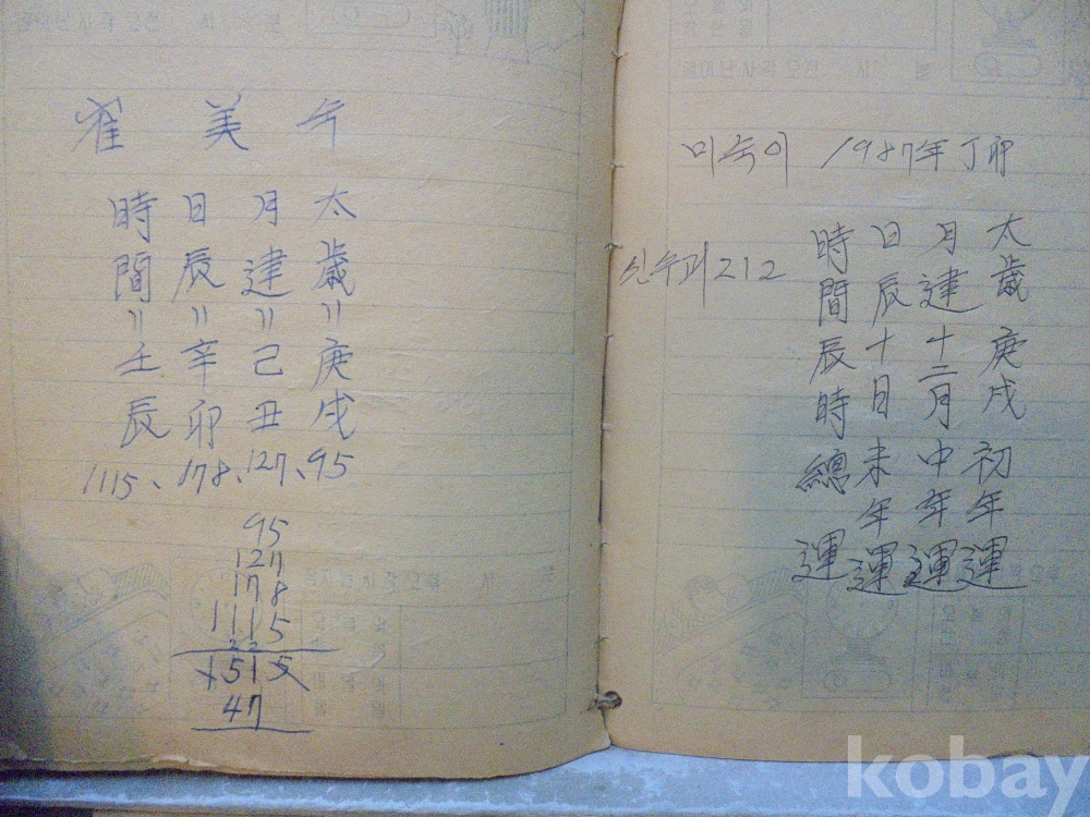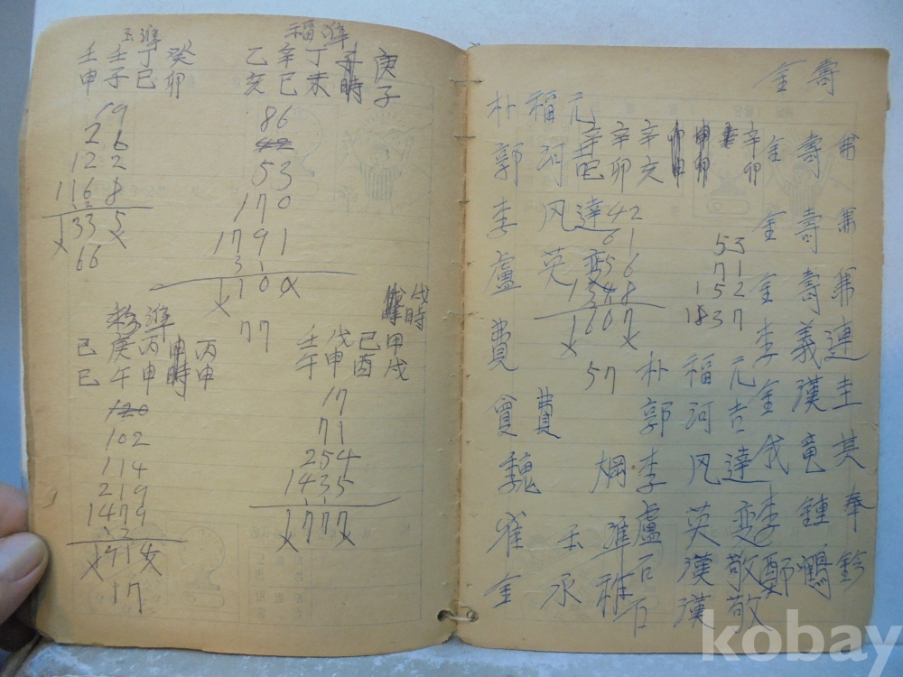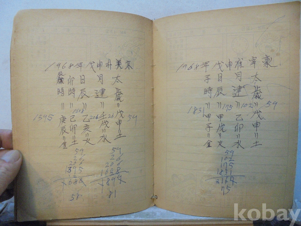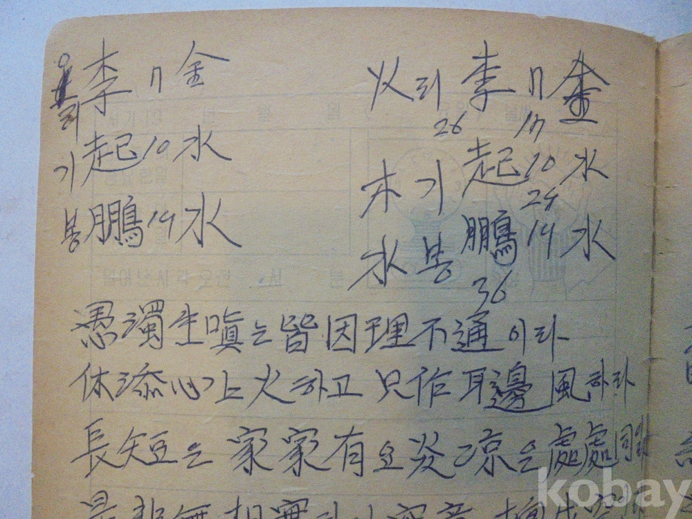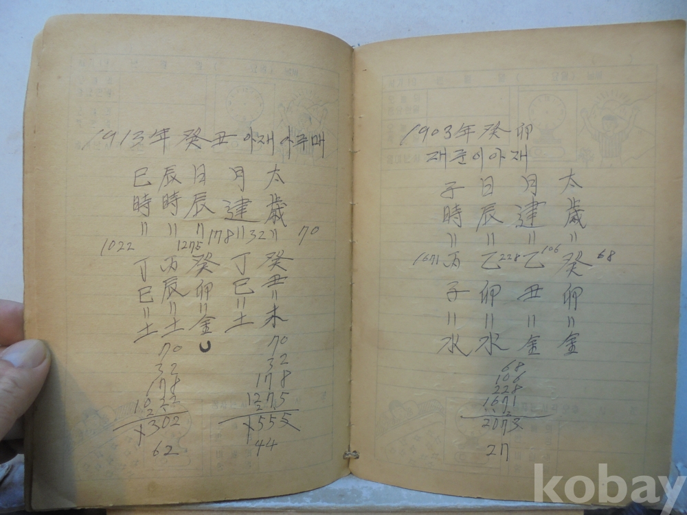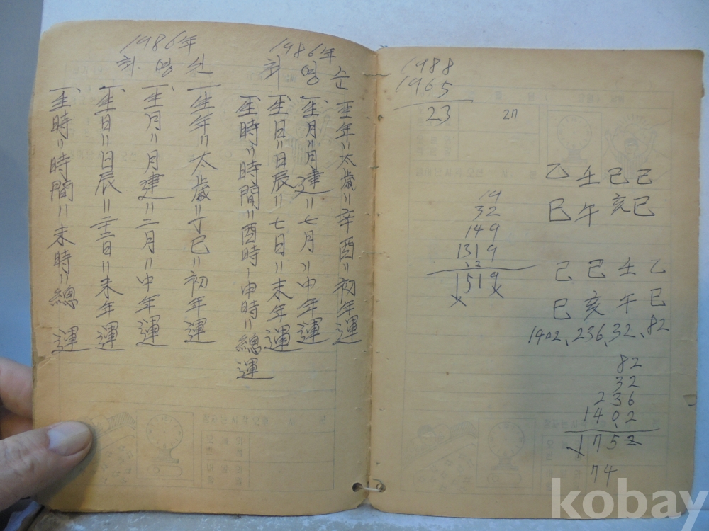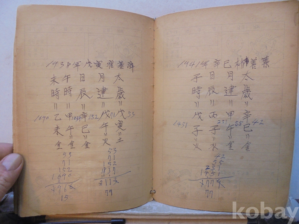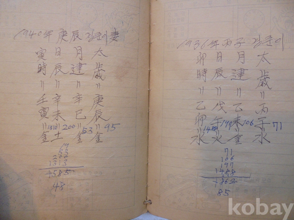 아마도 사주팔자 풀이 공부한 공책으로 보여지는 아주 재미나고 귀한자료 입니다.