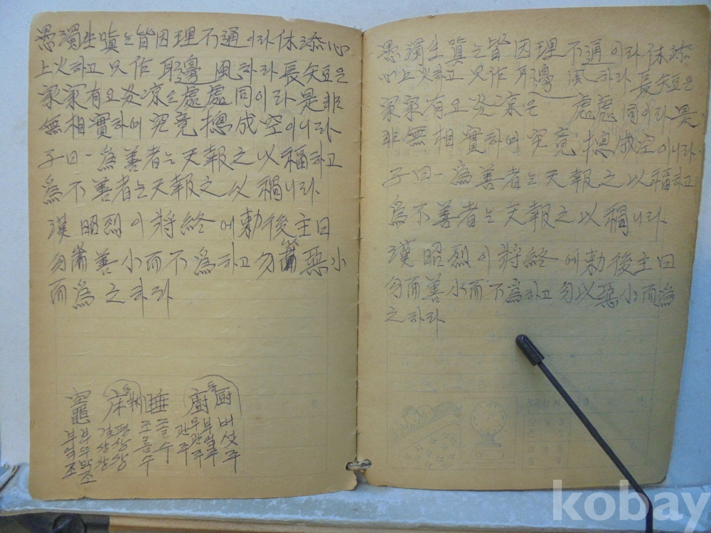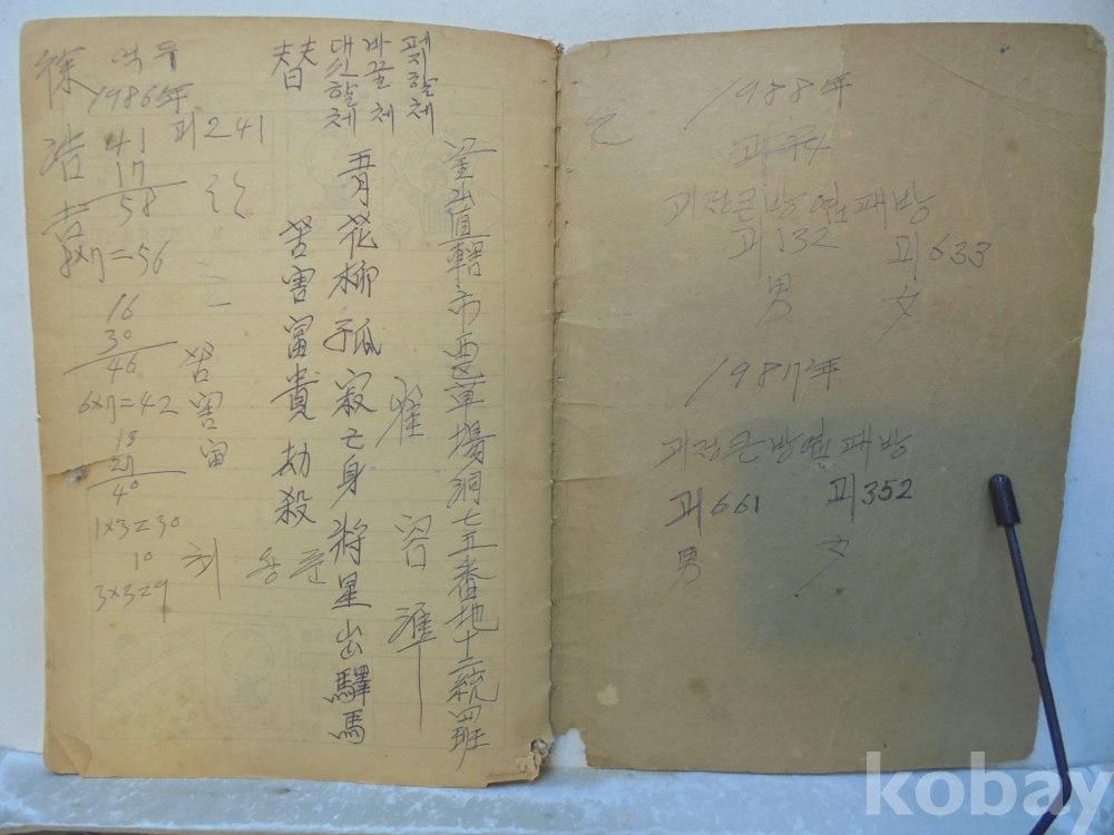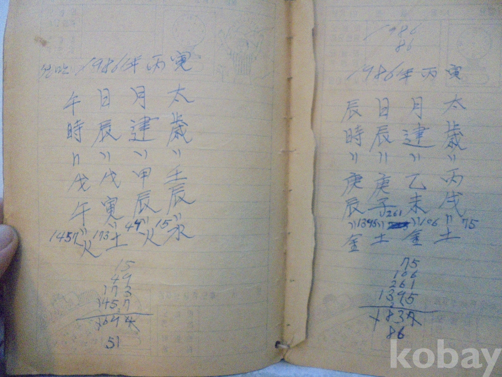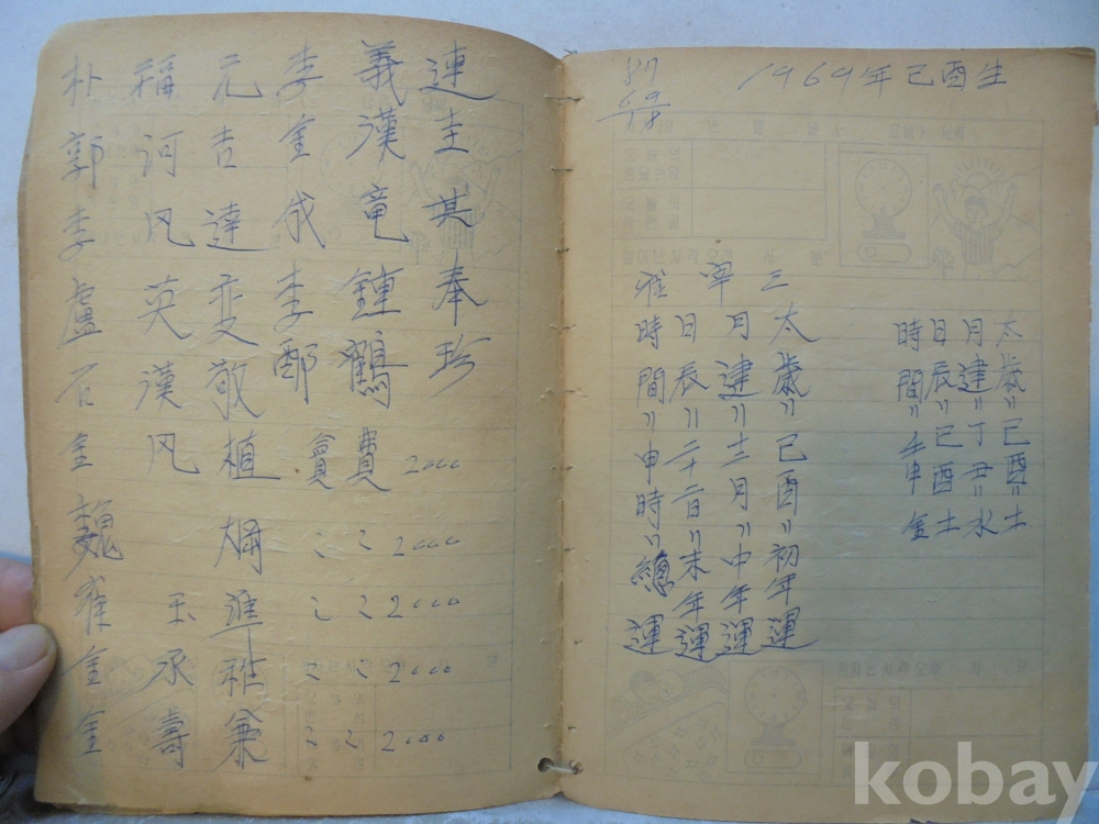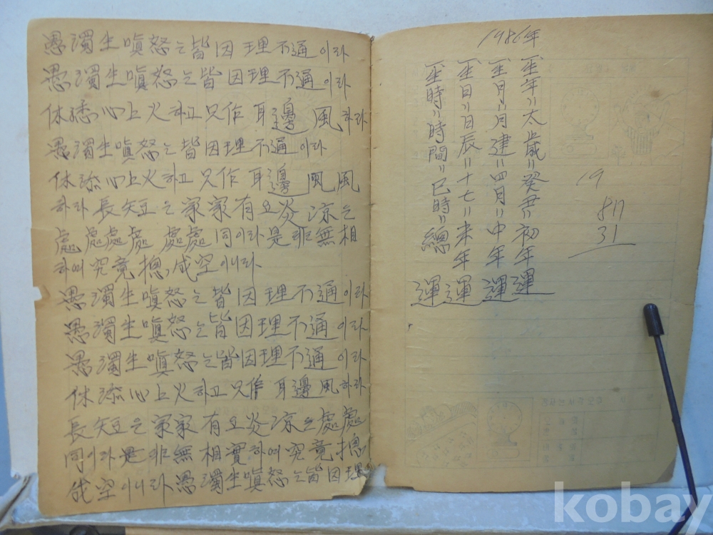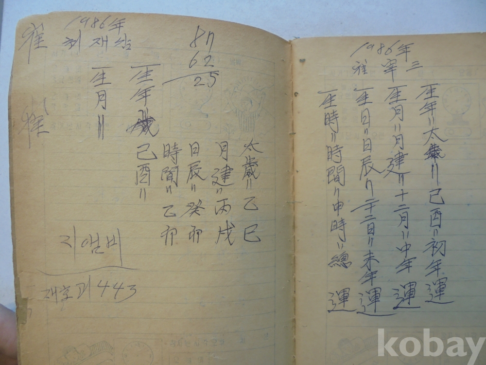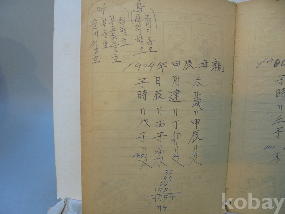 아마도 사주팔자 풀이 공부한 공책으로 보여지는 아주 재미나고 귀한자료 입니다.