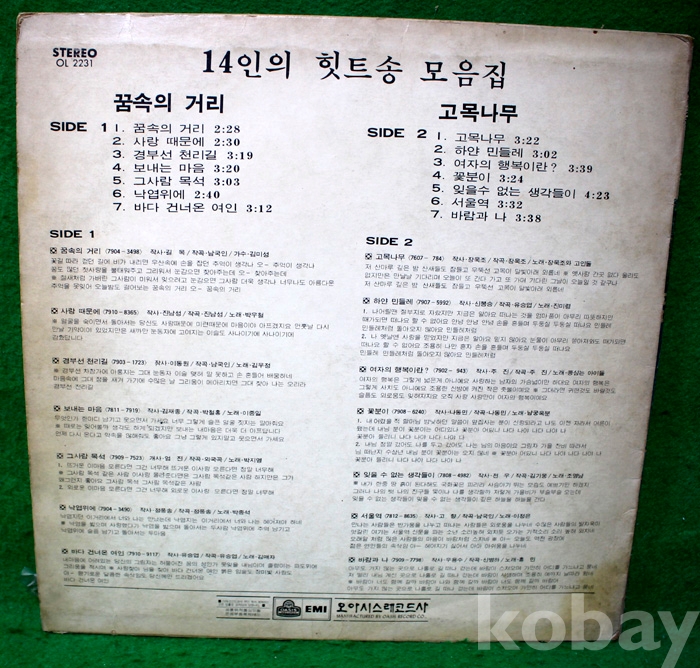 (LP) 14인의 힛트송 모음집 - 고목 나무 / 꿈속의 거리 / 하얀 민들레...