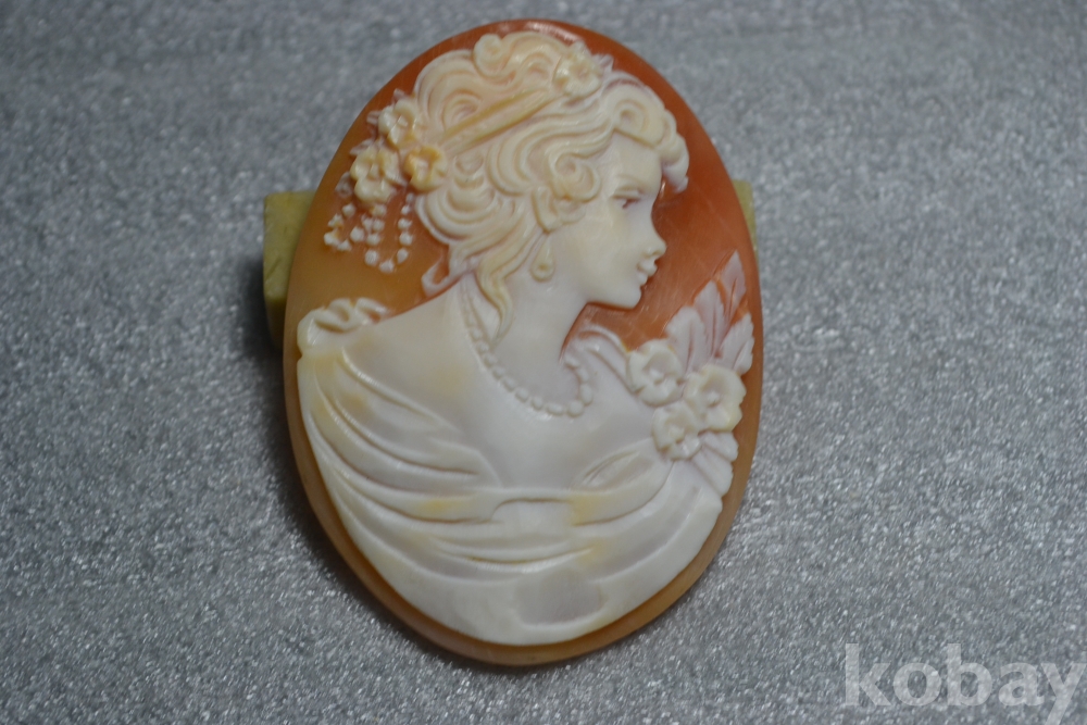 프라스틱의 수지재질이 아니고 ~ 아주 귀한 진품 쉘(조개)재질로 수작업 핸드메이드 조각으로 귀족여인의 얼굴을 조각한 귀중한 진품 쉘까메오브로치 작품 입니다. (사진참조)