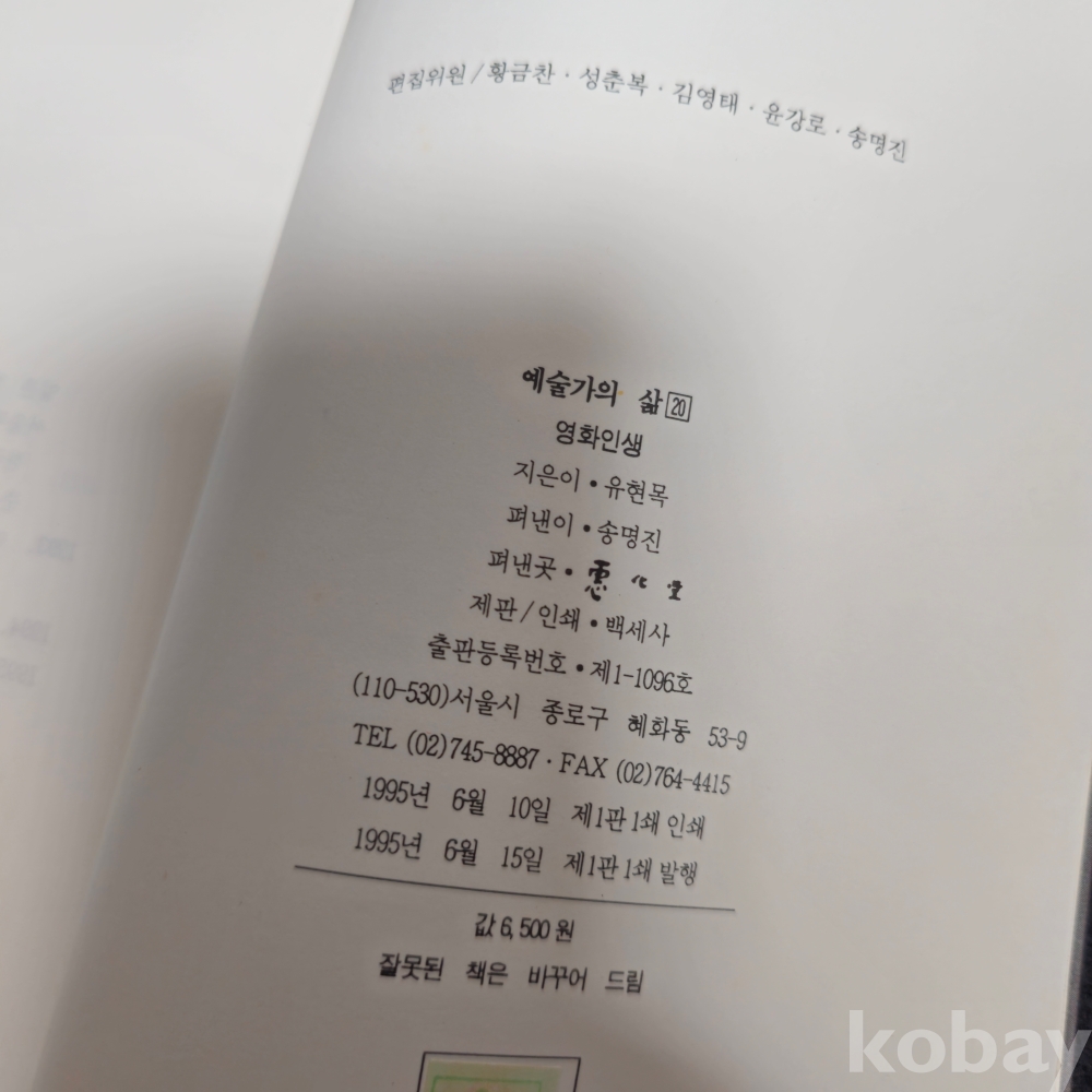 (((영화자료/서적))) 예술가의 삶 - 유현목 영화인생 (1995년 1판 1쇄)(저자 친필싸인본)