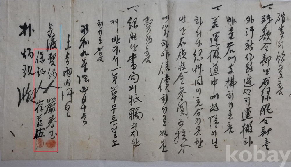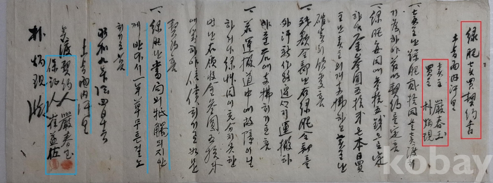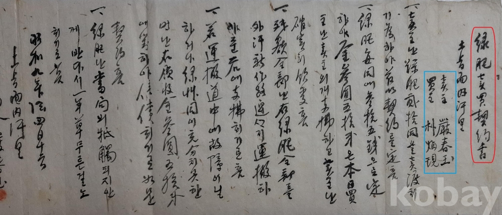 ◈ 소화(昭和) 9년(1934)에 녹비(綠肥) 20동을 매도하기로 한 계약서.