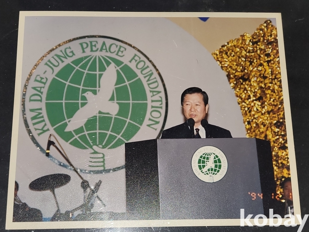 사진은 1994년 12월에 촬영된 것으로, 김대중 평화 재단 관련 행사에서 연설하는 김대중 전 대통령의 모습을 담고 있습니다.