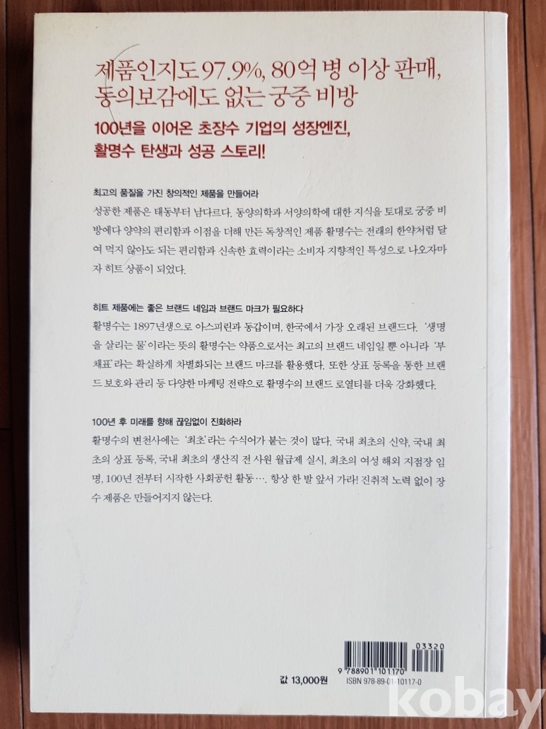 설명: 제품 인지도 97.9% 80억병 이상 판매 동의보감에도 없는 궁중 비방 , 100년을 이어온 초장수 기업의 성장엔진 활명수 탄생의 성공 스토리 책입니다.
