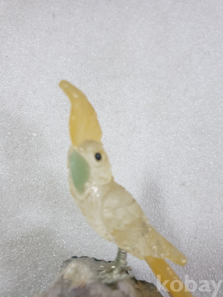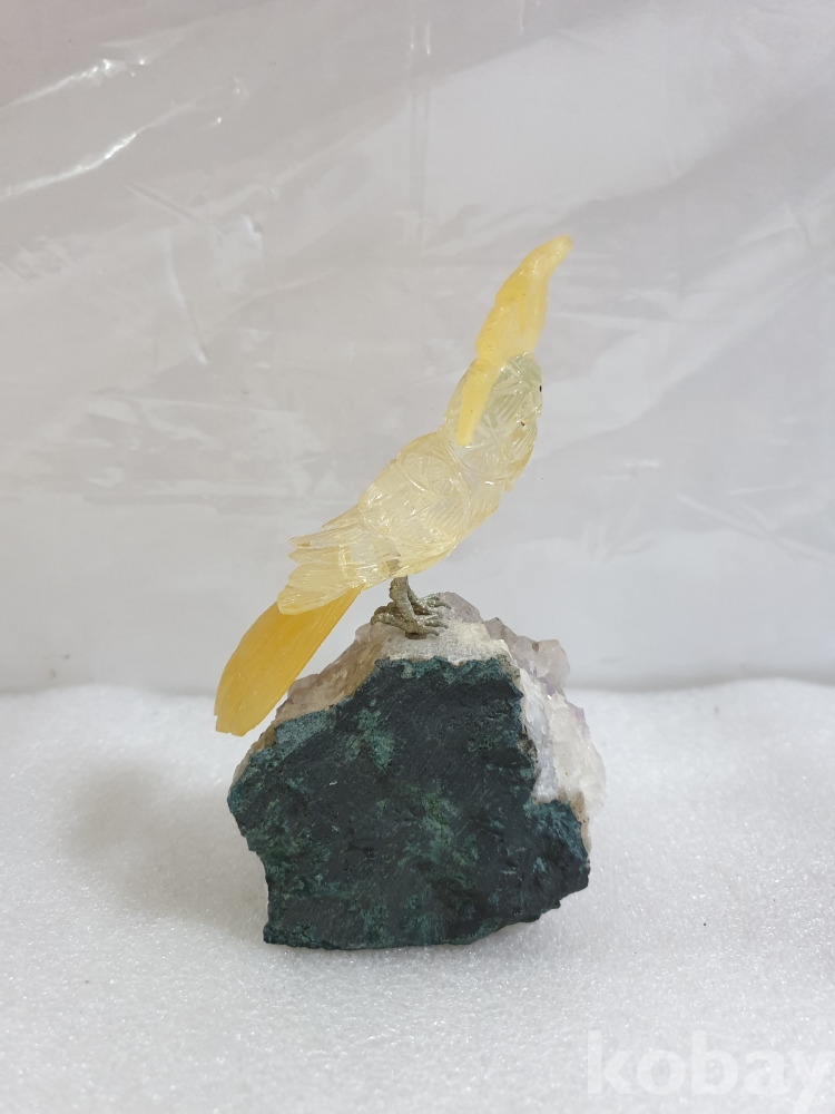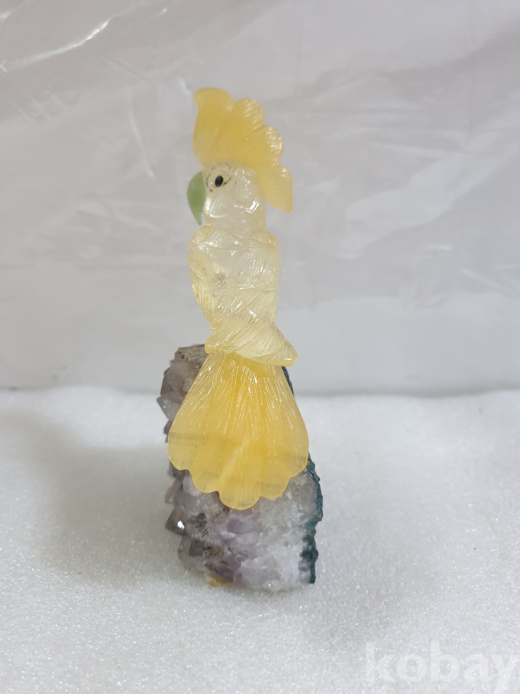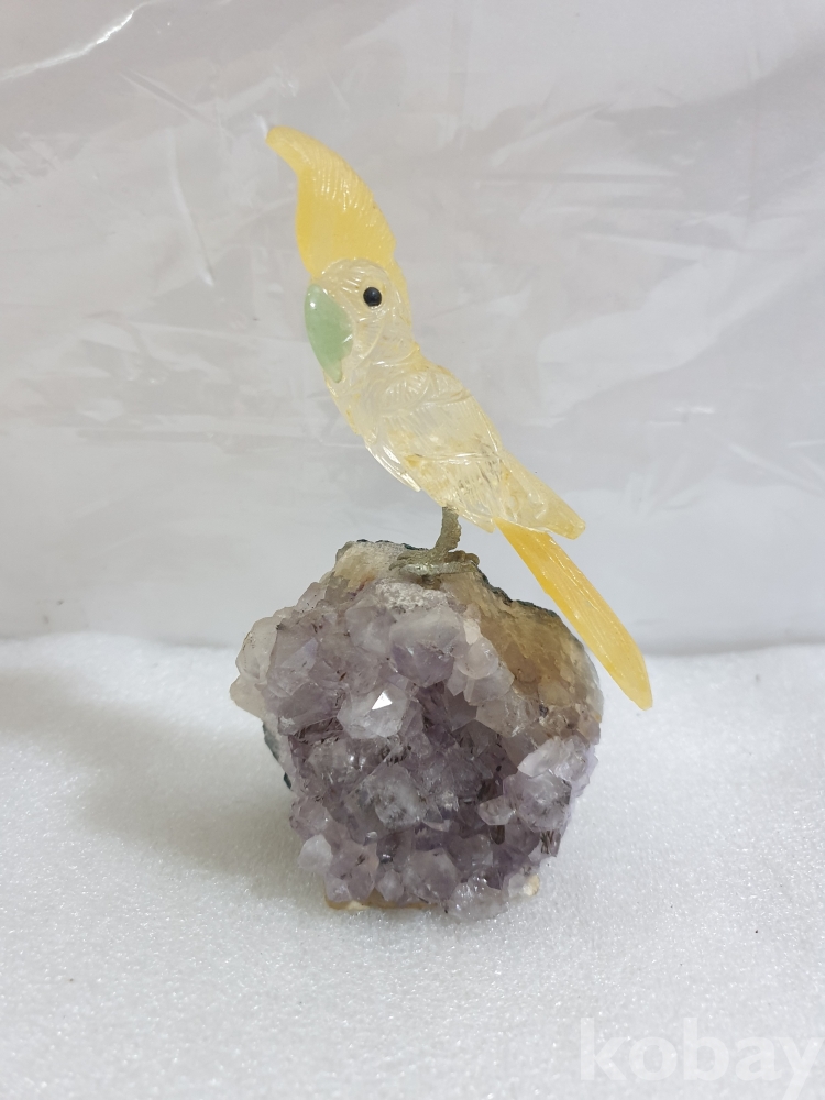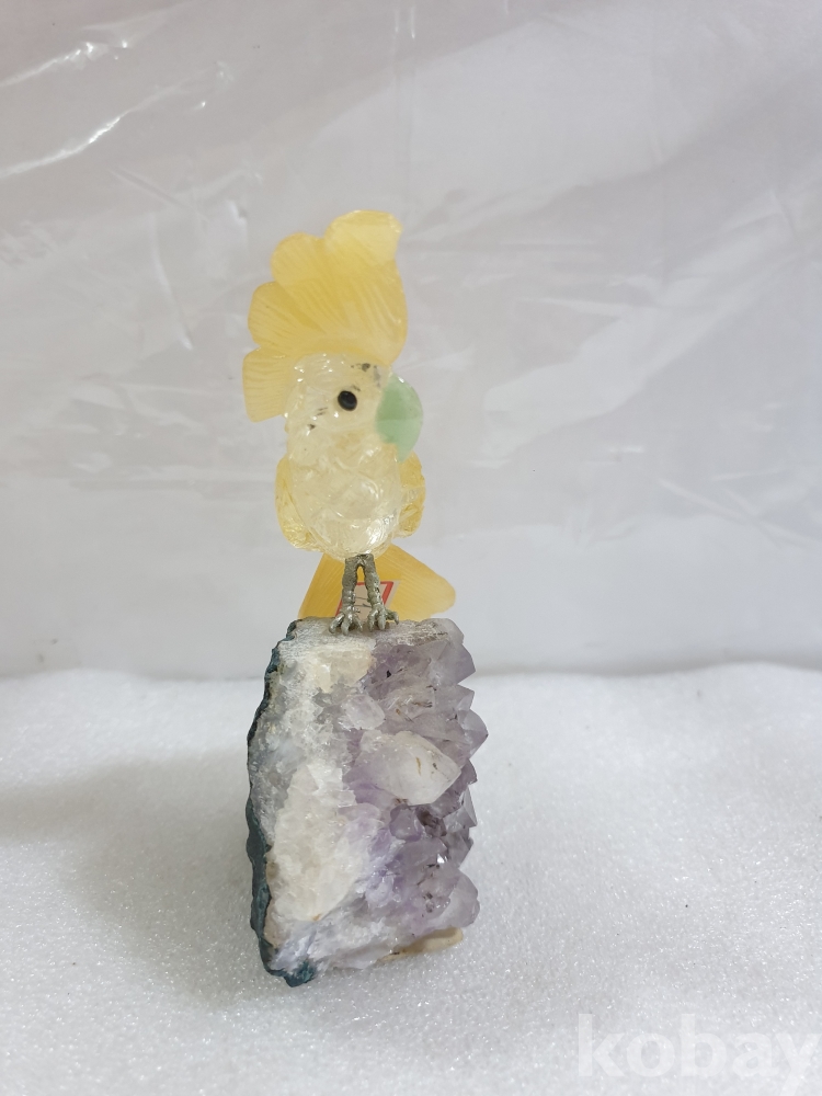 {천원경매}3-1512 보라천연석 앵무새 조각 장식품 (13cm)