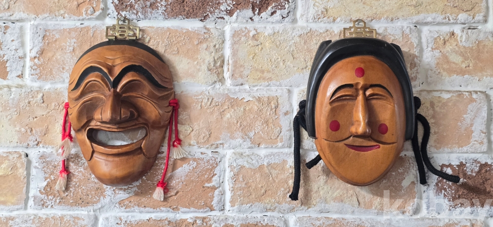@. 나무로 만든 아담한 신랑, 각시탈.