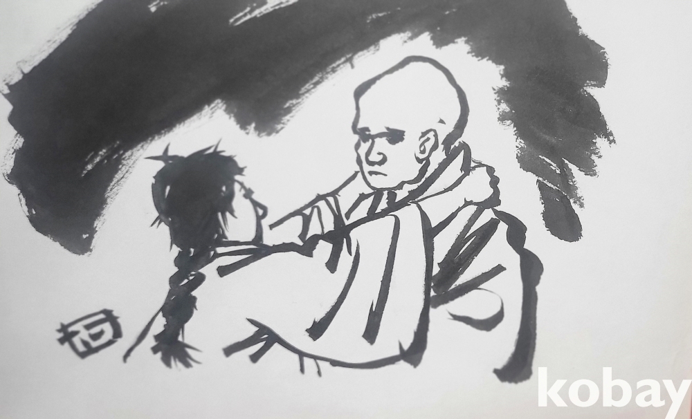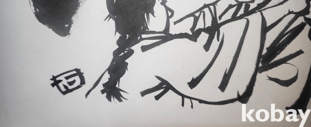 물과 먹으로 만 직접 그려진 수묵화 삽화입니다,