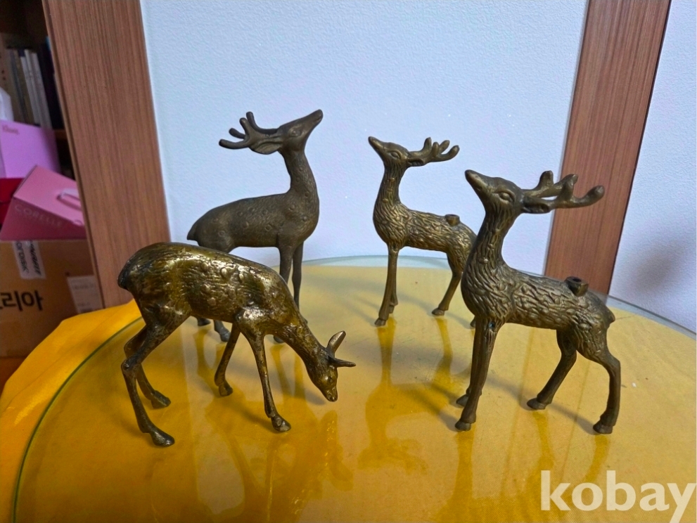 황동 사슴 4마리 일괄 멋있습니다 두마리는 등에 연결해서 끼울수 있습니다.높이 17