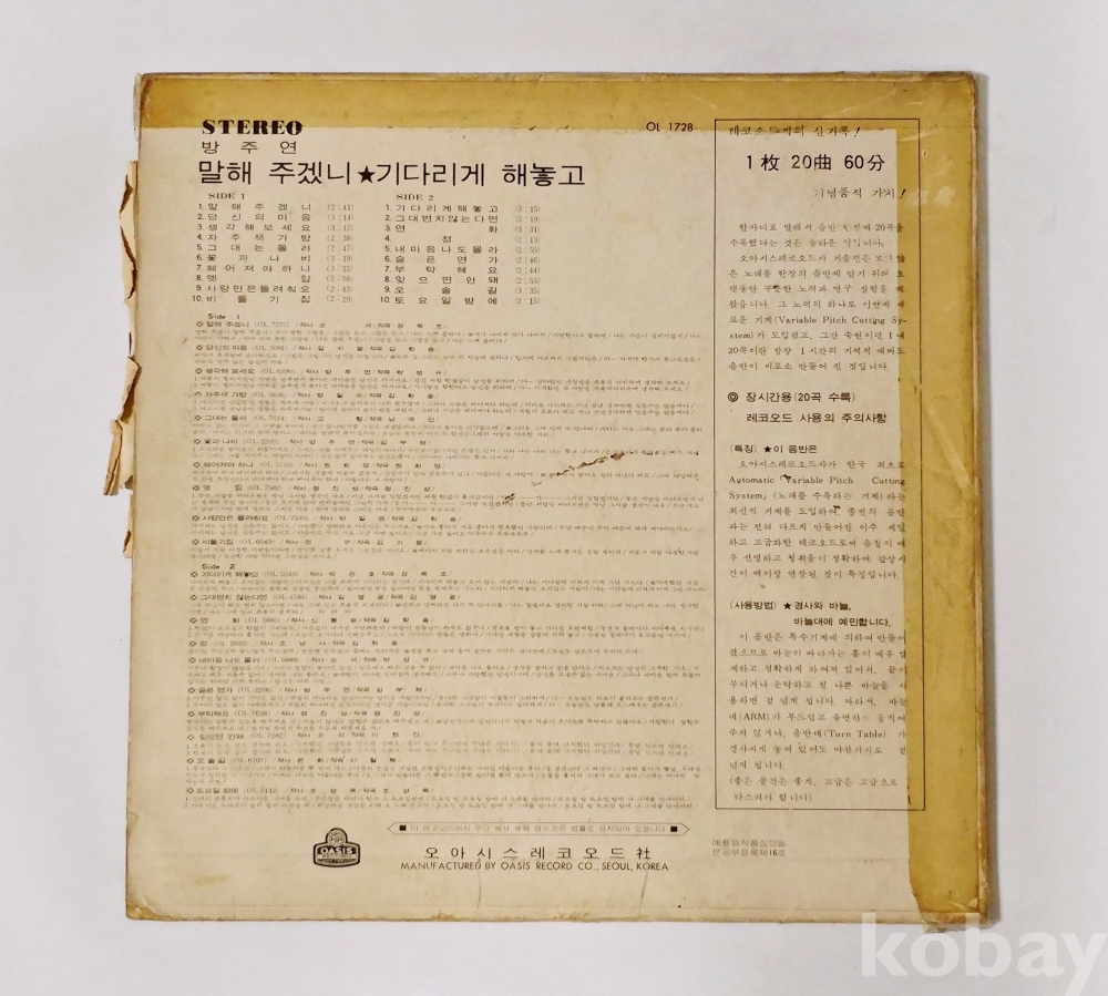 EX : 재생에 영향 없는 가벼운 기스 존재 발매정보 알수없음 가사지여부