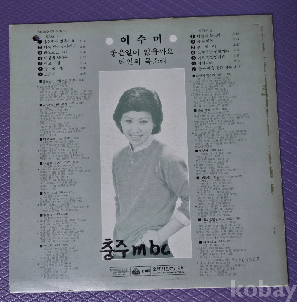 방송국용으로 자켓 방송국 라벨지 제거 흔적있습니다 음반은 세월대비 깨끗합니다 육안등급이며 틱잡음에 예민하신분 꼭 패스바랍니다 확대해서보세요