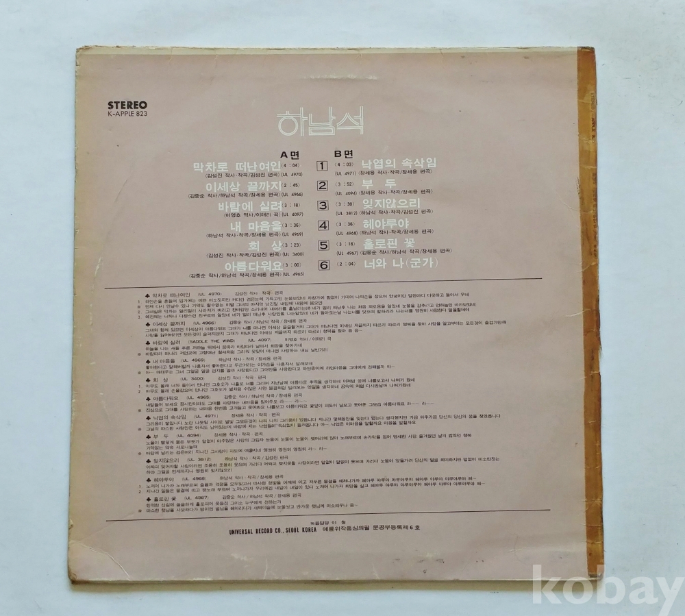 EX : 약간의 마모, 모서리 찢김 존재 음반상태