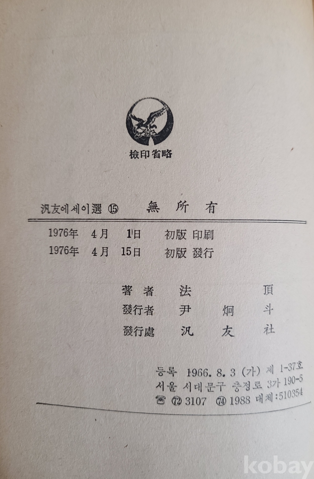1976년 4월 15일 범우사 발행