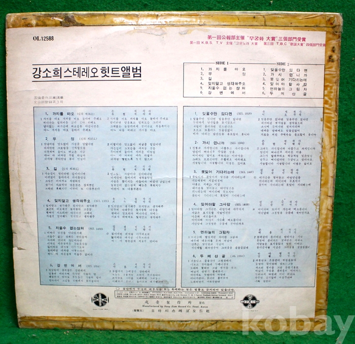 (LP) 강소희 스테레오 힛트앨범 - 가지를 마오 / 잊을 수만 있다면...