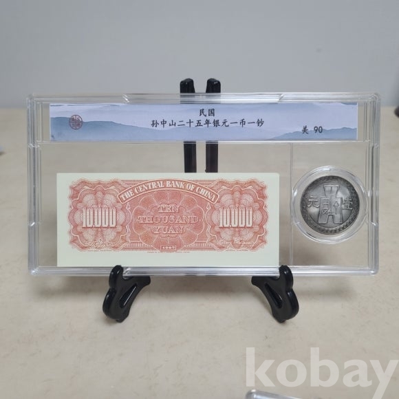주화와 지폐가 프루프 형태로 담긴 기물입니다 감정받지 않은 소장품입니다