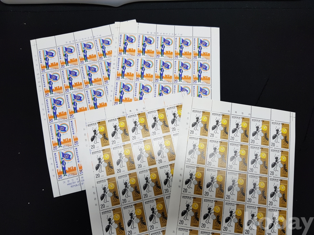 - 미사용 1970년대 기념우표 전지 2종 4매 모음