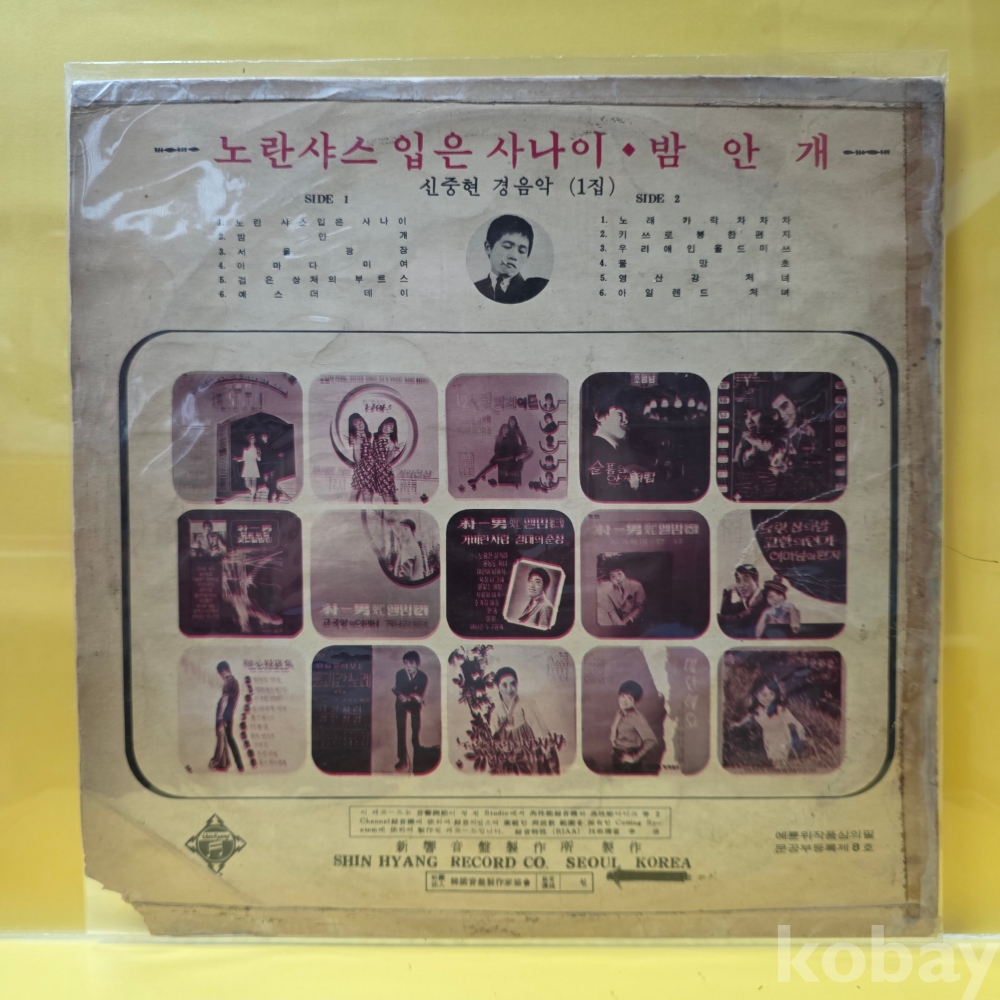상품 설명 | Side A 1.노란 샤스입은 사나이 2. 밤안개 3. 서울 광장 4. 아마다 미여 5. 검은 상처의 부르스 6. 예스더 데이 Side B 1. 노래가락 차차차 2. 키스로 봉한 편지 3. 우리애인 올드미쓰 4. 물망초 5. 영산강 처녀 6. 아일랜드 처녀 |