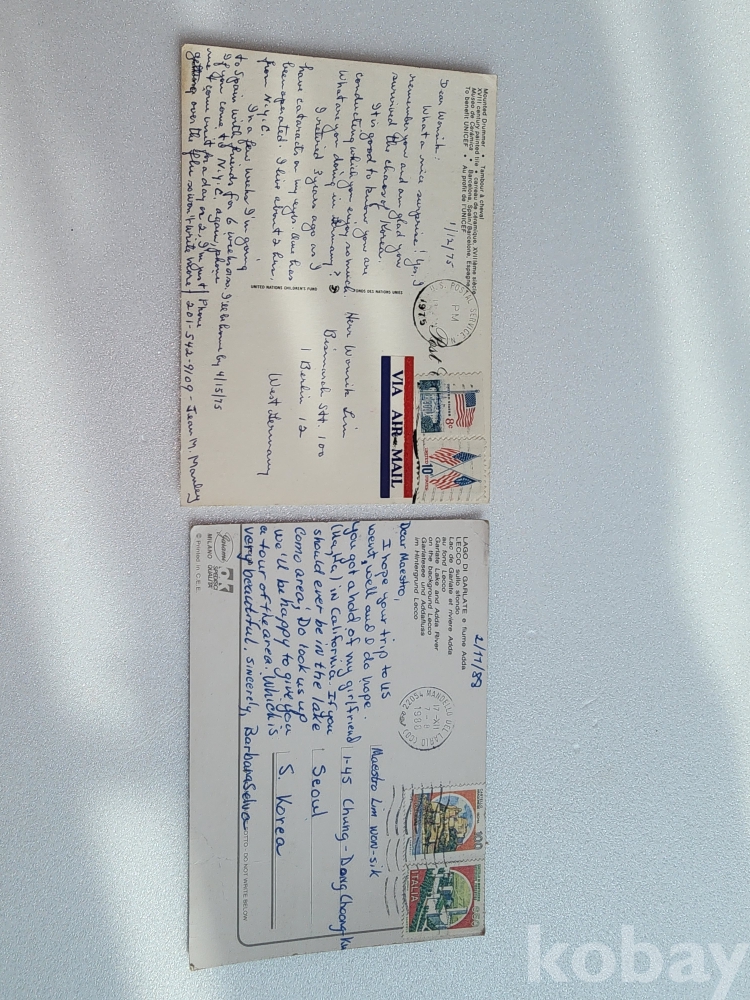 임원식지휘자에게 발송된 해외 친필 엽서 2점 일