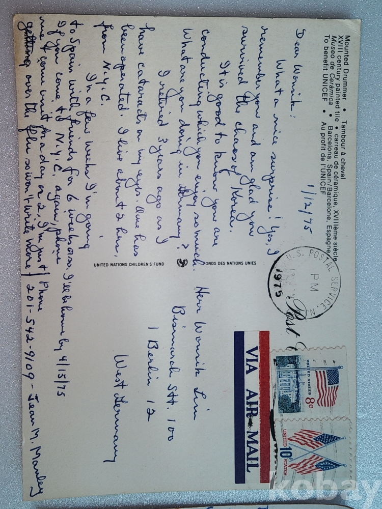 1. 1975년 엽서 (미국 발신): * Jean M. Manley