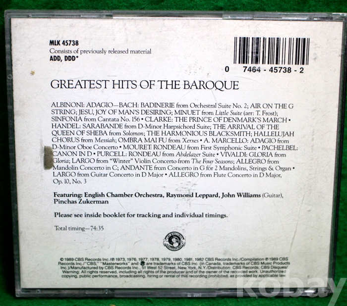 (미국제작 CD) Baroque greatest hits - Albinoni : Adagio / Bach : Air on the G String...