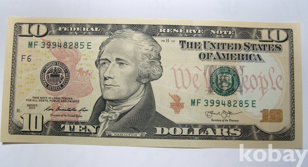 미국 10달러 지폐 2013년 미사용 / 알렉산더 헤밀턴 (UNC)