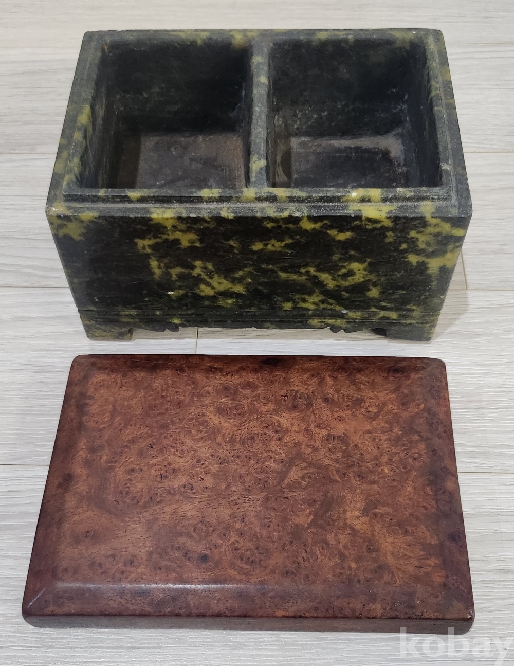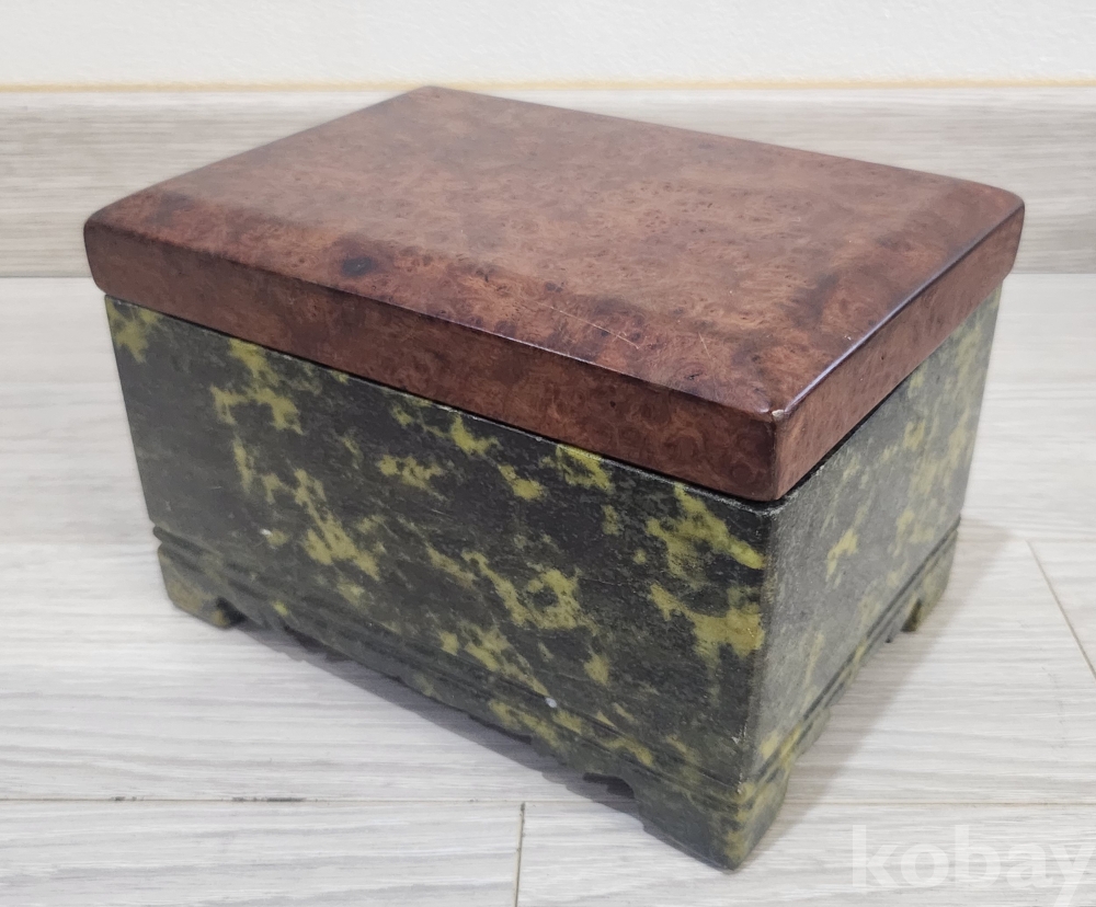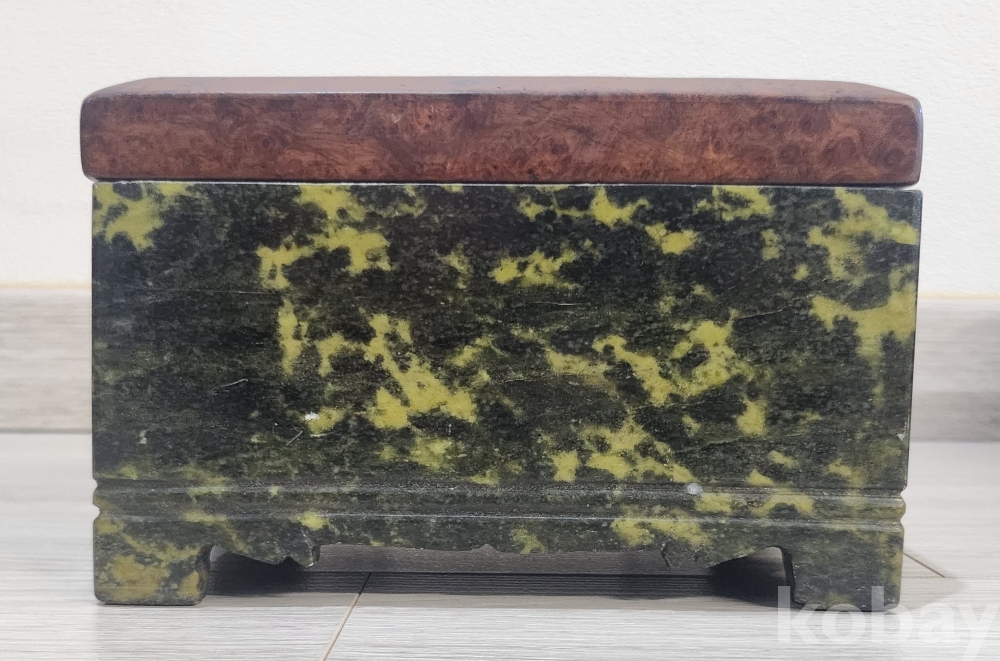 조선시대 선조들이 사용하였던 대형 (해남 호피옥석) 담배함 입니다 원석을 전부 파고 다듬어 만든것 입니다 뚜껑도 괴목나무 뿌리로 당대에 제작되어 보입니다(무늬가 아름 답습니다) 오랜세월에도 불구하고 유.수리없이 상태 매우 양호합니다 사진 참조하시기 바랍니다