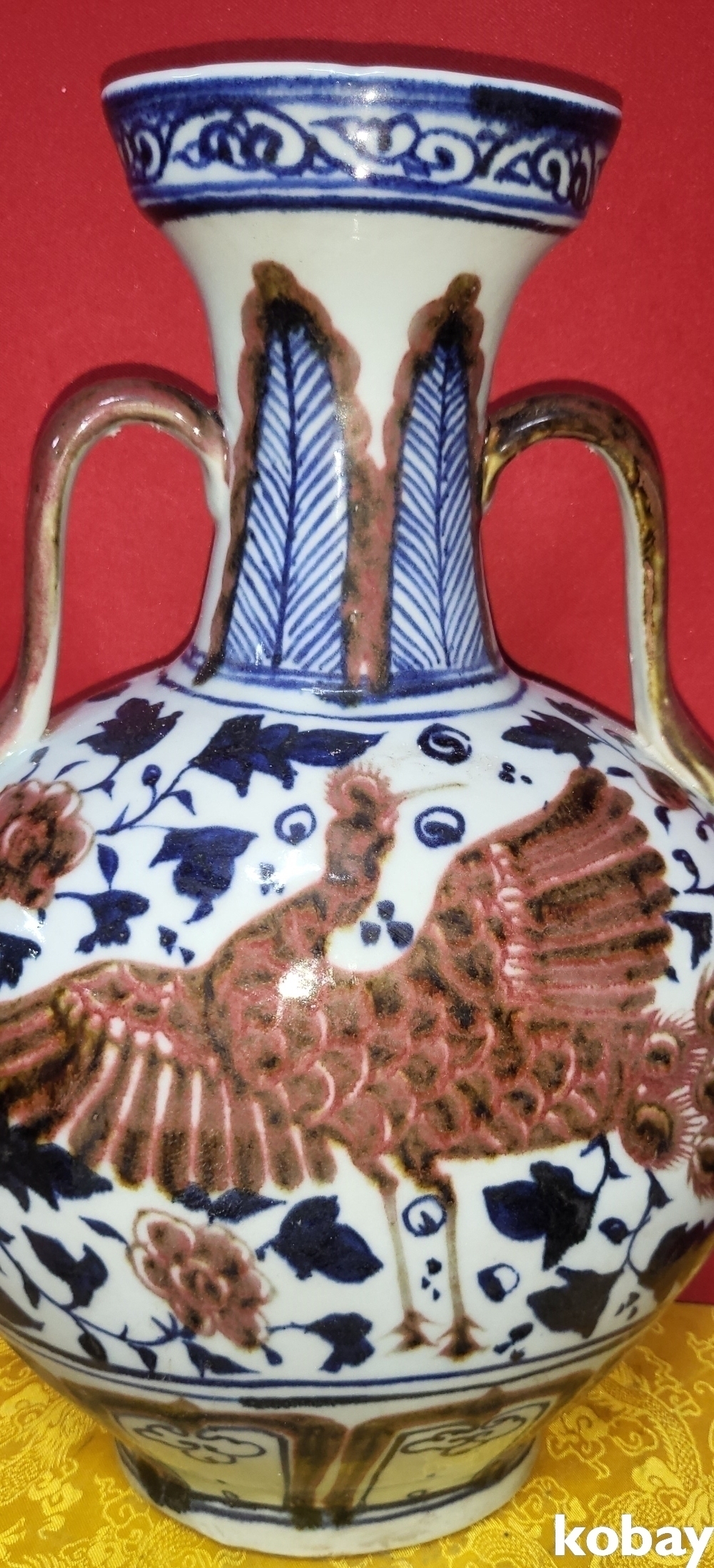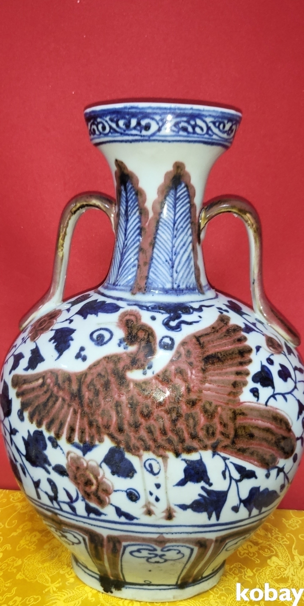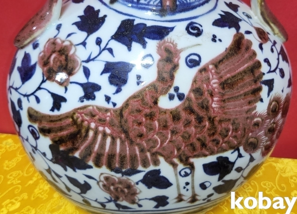 유리홍과 청화의 발색 온도가 다름에도 불구하고 이처럼 아름다운 색을 발산하는 명품입니다,