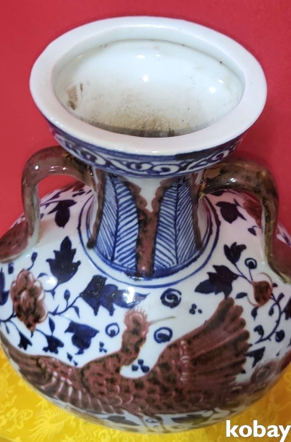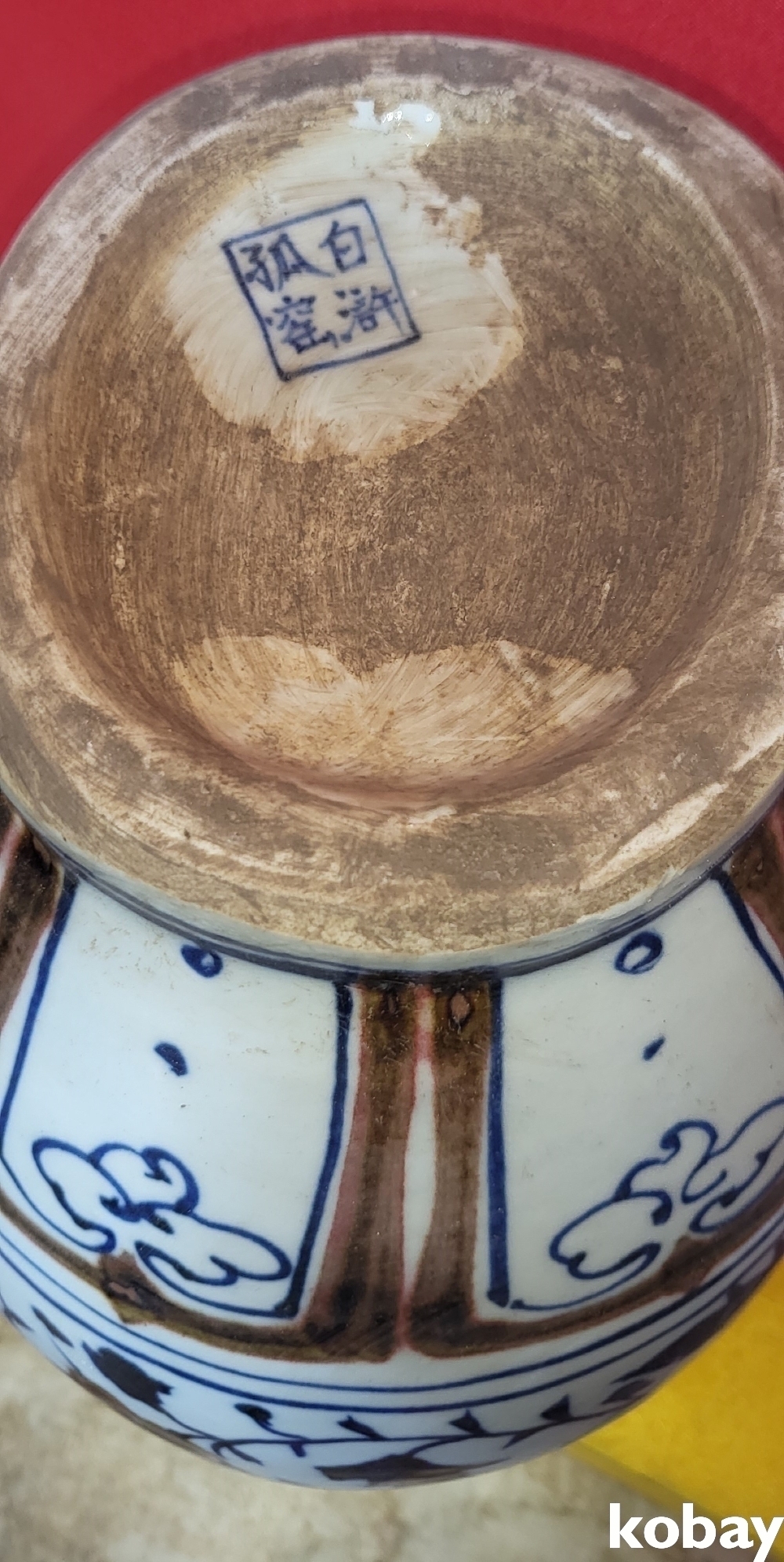 백허고요 관지 청화 유리홍 쌍봉문 양이 병입니다,