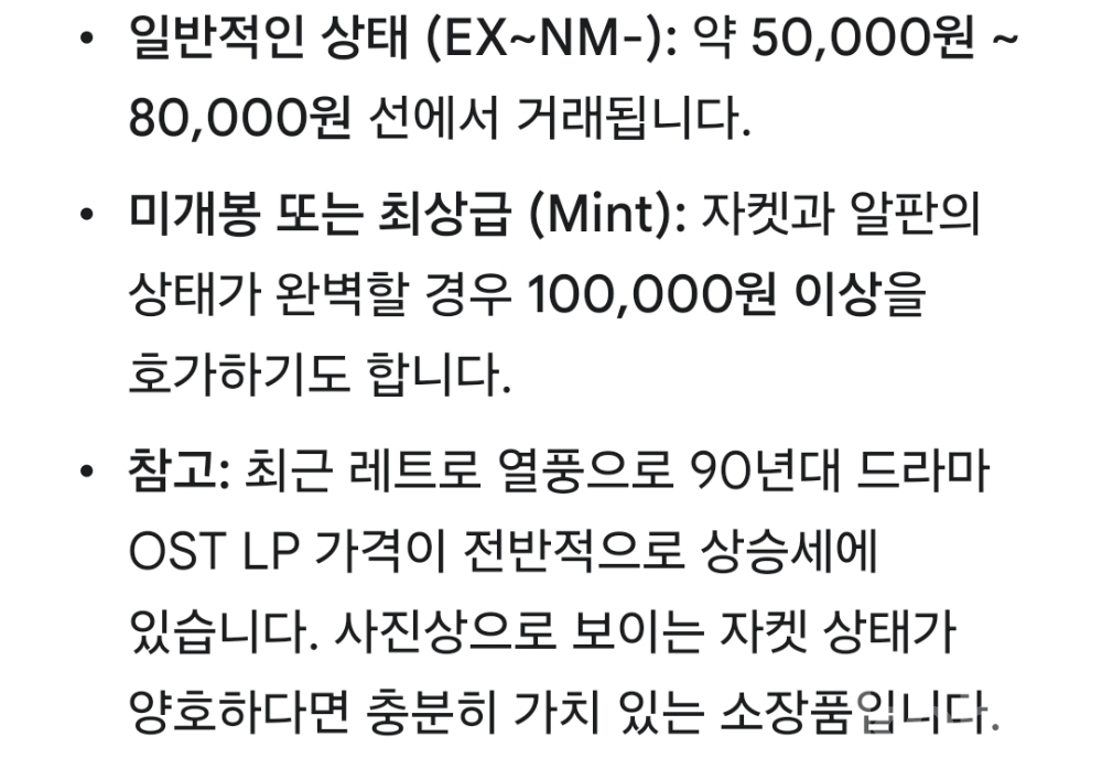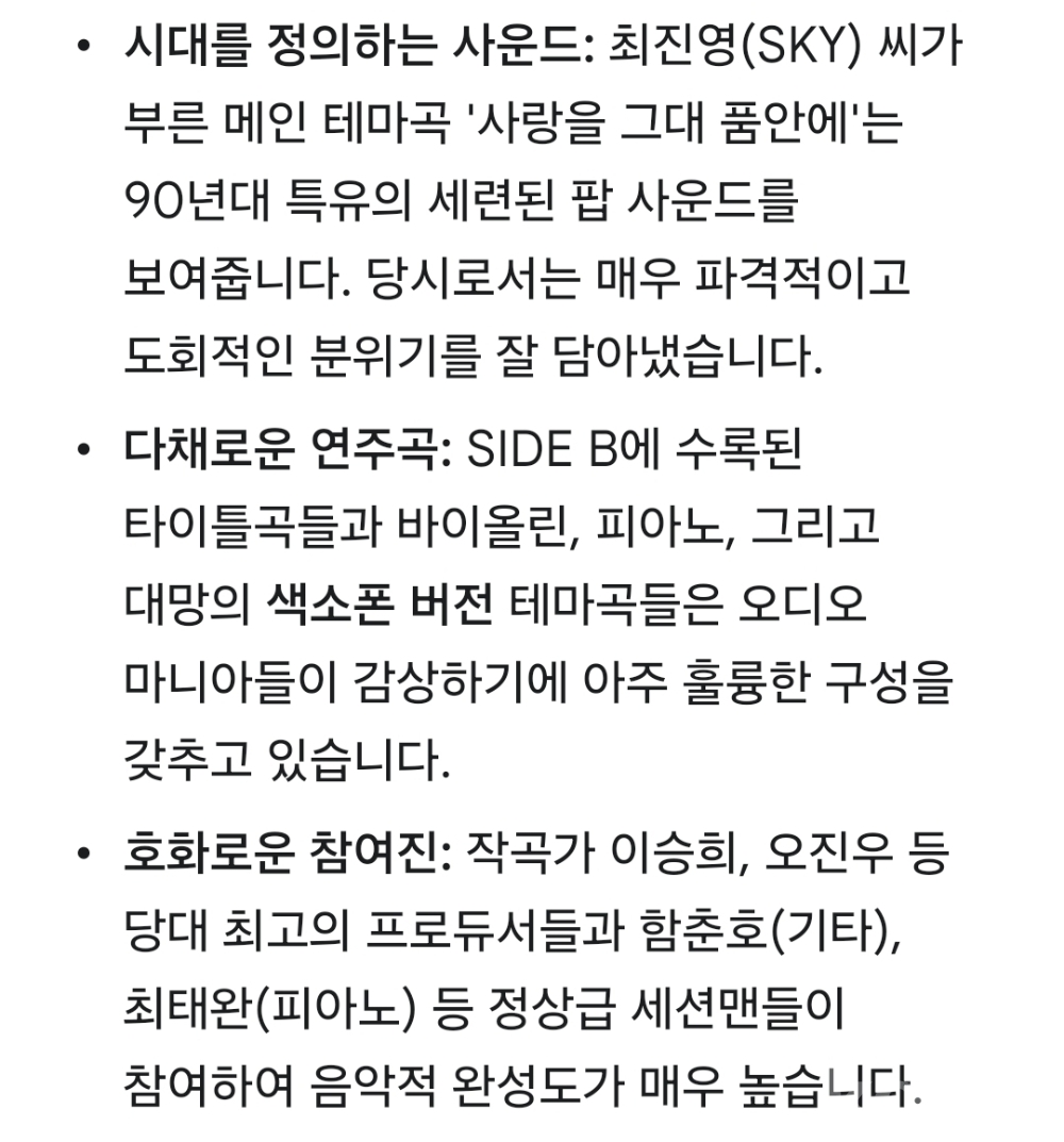 | 자켓상태 | NM : 개봉했으나 미사용, 자켓 손상 없음 | 음반상태 | NM : 개봉했으나 미사용급, 스크래치 없음 | 발매정보 | 초반 | 가사지여부 | 무 |