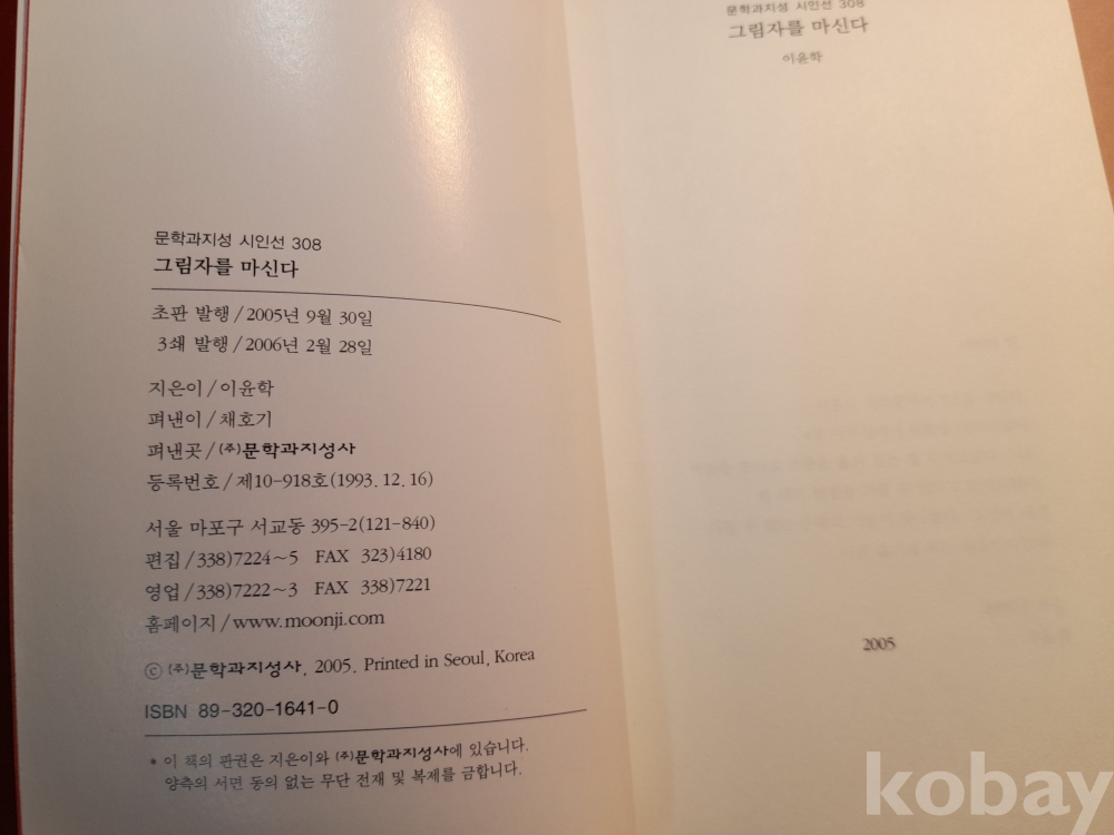 문락과 지성 시인선 * 이윤학 시집 그림자를 마신다