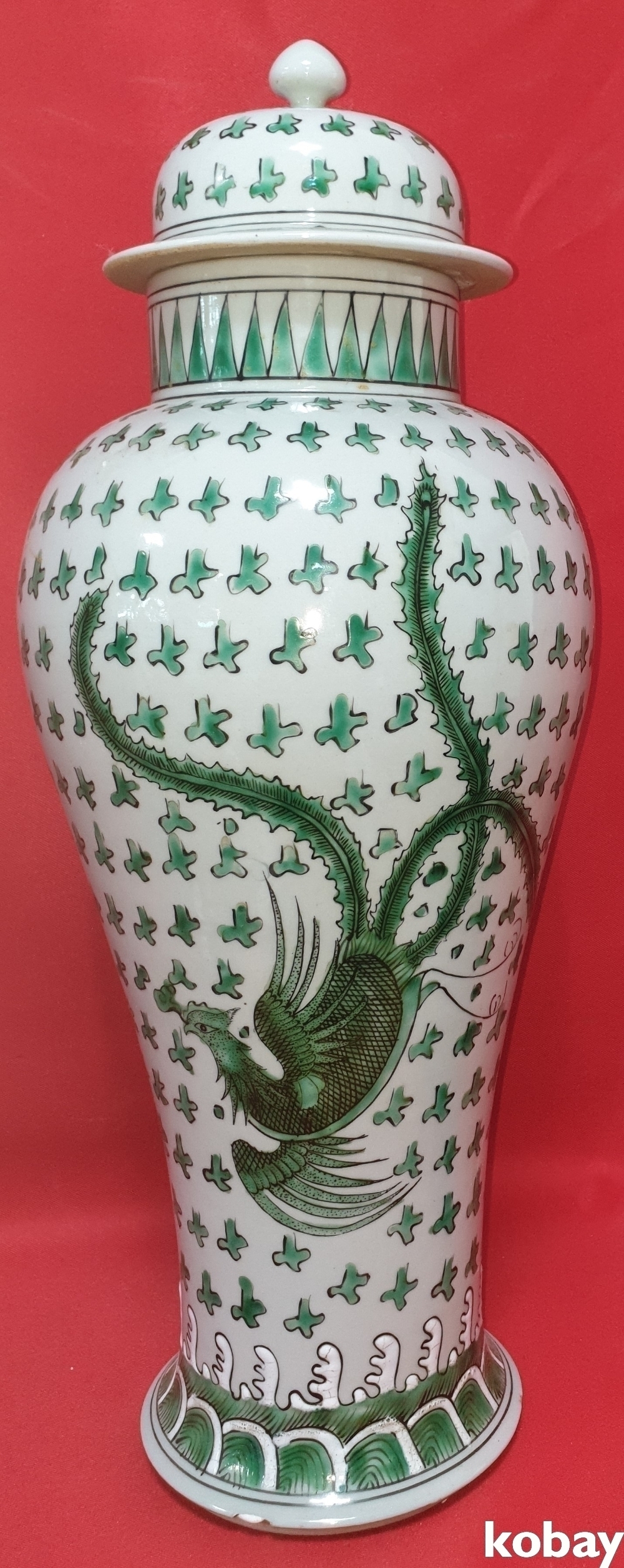대청강희연제 분채 용과 봉황(龍鳳)문양 유개 병입니다,