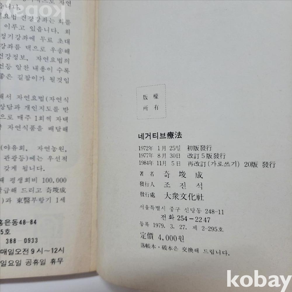 [천원경매] 네거티브 요법 84년 개정판 ; 서고-i06